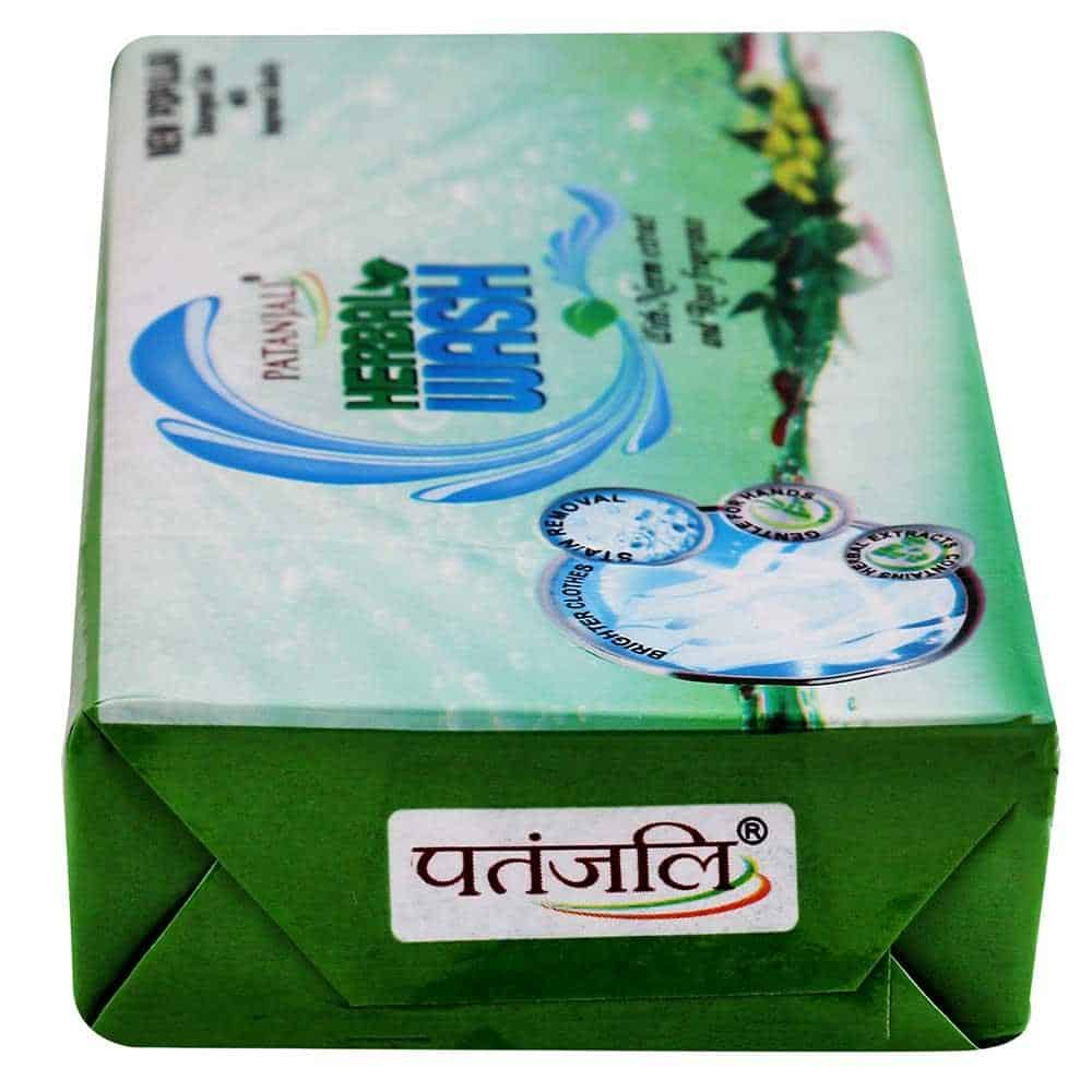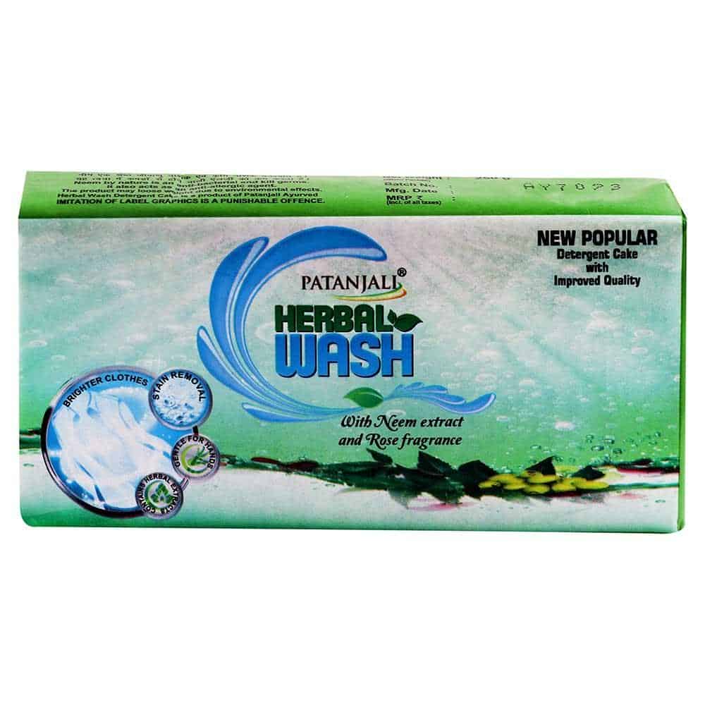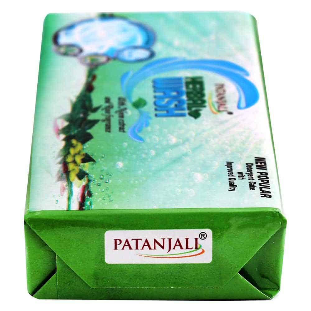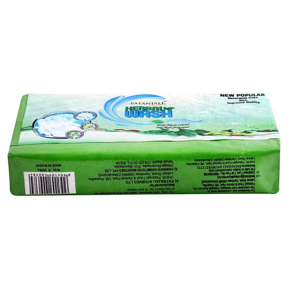 Patanjali Herbal Wash New Popular Detergent Cake with Herbs keep clothes loking fresh and clean. The herbal mix, abundant in the extracts of lemon, Neem and rose, disinfects and brightens clothes. Whites come out brighter, and other clothes retain their original color and soft feel. Gently handles tough stains, grime and marks while protecting the fabric and your hands. Neem by nature is an anti-bacterial & kill germs. It also acts as an anti-allergic agent.