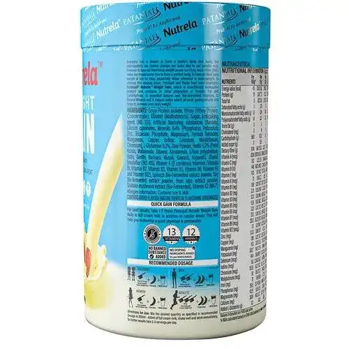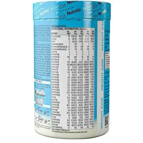 While other mass gainers provide 3480 calories, Patanjali Nutrela Weight Gain is formulated to deliver the highest calorie 3834 kcal per serving for optimum weight gain. A unique balanced formulation of easy to absorb proteins, complex carbohydrates and 52 essential nutrients - 11 Natural herbs, 12 minerals, 11 bio-fermented vitamins. It contains all 18 essential amino acids with added glutamine. It is 100% safe and has no side effects. Product with herbal extracts. 3834 calories approx. per day