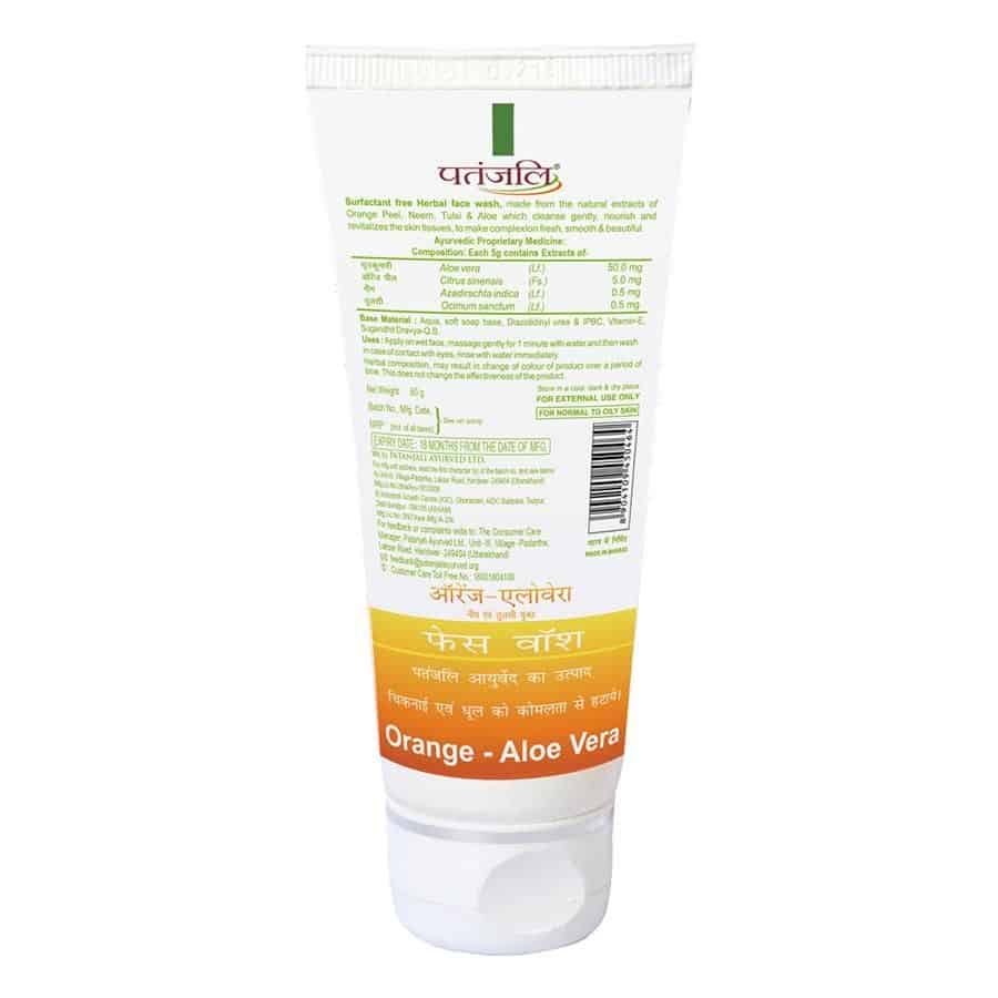 Patanjali Honey & Orange Herbal Face Wash is a unique blend of natural herbs mixed with the goodness of honey. A 100% soap-free deep-cleansing gel, it is specially formulated for oily, sensitive and acne-prone skin. Neem, tulsi, and turmeric (Haldi) are natural antiseptics that remove impurities, act as a disinfectant, and prevent pimples and acne from forming. Mulethi adds freshness to the skin and aloe vera and honey leave skin soft, smooth and glowing.