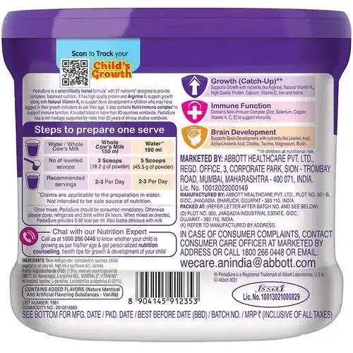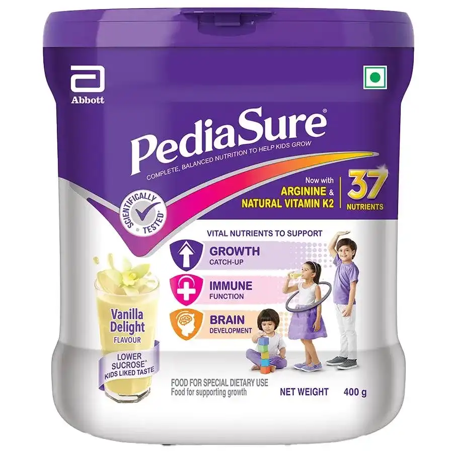 Pediasure vanilla delight nutritional powder supplements perform as an alternate for the failure of nutrients that the body needs for balanced nutrition. Pedia sure contains the ideal amount of the macro and micronutrients needed to be packed up because of unhealthy habits or otherwise not gained due to modifying eating habits. It appears in a vanilla flavor that includes to the taste of the supplement, and children are tired to the taste and sweet smell creating the drink irresistible. It includes all the required nutrients, proteins, vitamins, and calcium that your child needs and it is the most excellent replacement for aiding them in their growth and development.