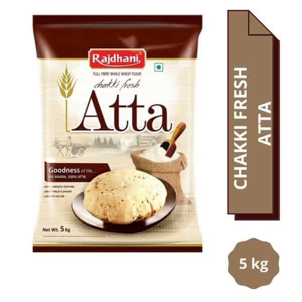 Rajdhani Full Fibre Chakki Fresh Whole Wheat Atta is made from grinding whole wheat which is used to make chapatis, naans and puris as a daily meal. It is rich in fibre and also boosts energy. The quality of the product is superior as it contains high nutritional value thereby making your body fit. Also, it has a slightly sweet and aromatic taste which can be mainly consumed with curries.