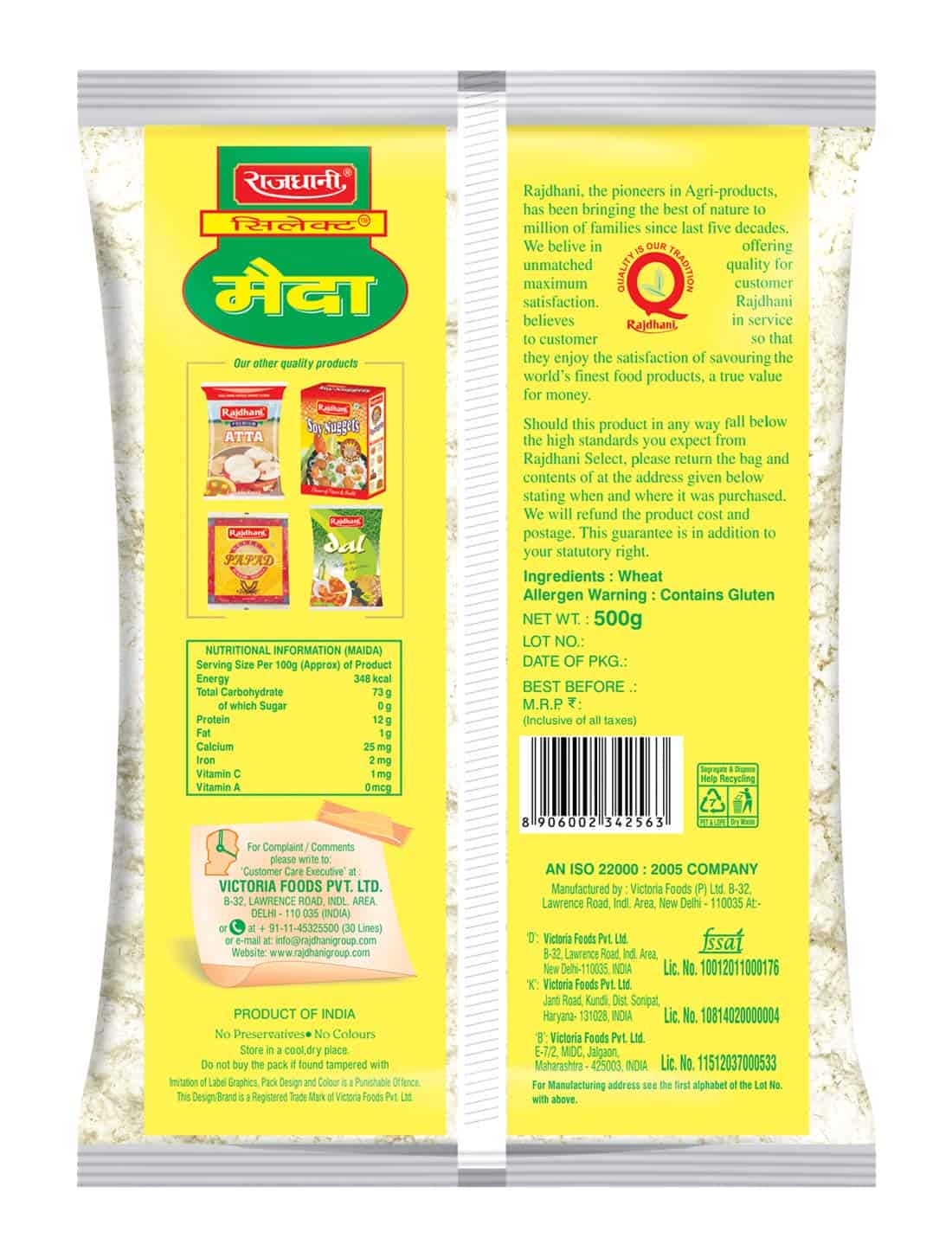 • No hands touch the product from the time wheat is bagged at the farm level till Maida is packed in the pouch or bags.