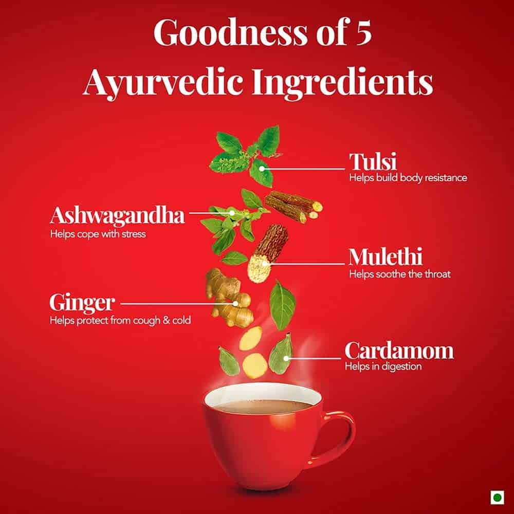 • Red Label Natural Care is a tasty masala tea with 5 ayurvedic ingredients such as ginger, tulsi, cardamom, mulethi & ashwagandha