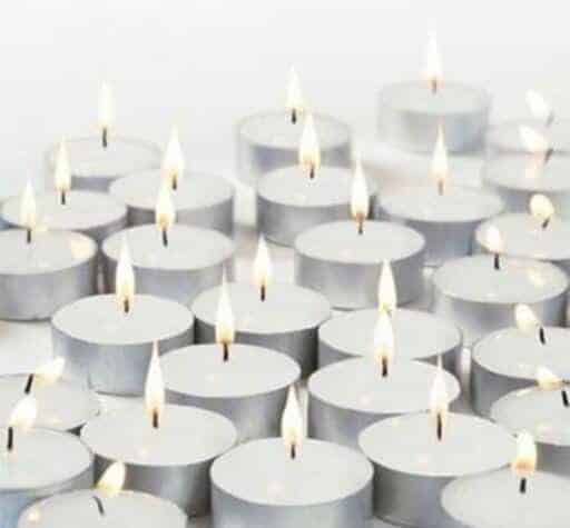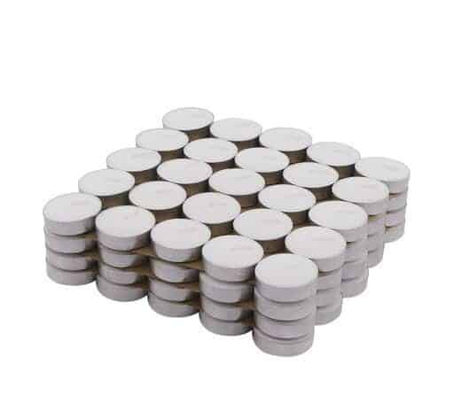 Set of 100 unscented wax tealight candles.burns up time to 180 minuts approx.These candles are smokeless,odorless and do not leave any soot residue.Item Size: 4 cm x 4 cm x 1.2 cm.Best for the festive season, weddings, parties and special events Premium high quality 100% Pure wax has been used in making this ultimate tealight candle Always use on heat/flame resistant surface and burn within sight.Keep away from things that can catch fire and away from children and pets Bandhan Tealight Candles are essentially wax candles which are packed in an aluminum case.Available in a pack of 100.Weighing 10g each,these compact tealight candles fit in easily into diyas or tealight holders which you can use to decorate your house for festive purposes.More Searches:Tealight candles Tealight holders Aluminium TeaLights scented tealight,diwali candles,tea lights,tea light holders,tea candles,tealights,flameless tea lights,t light candle,light holders