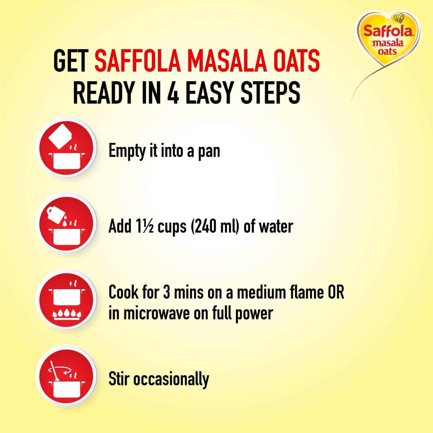 Enjoy a perfect guilt free snacking anytime, anywhere, with the tasty yet healthy Saffola Masala Oats
