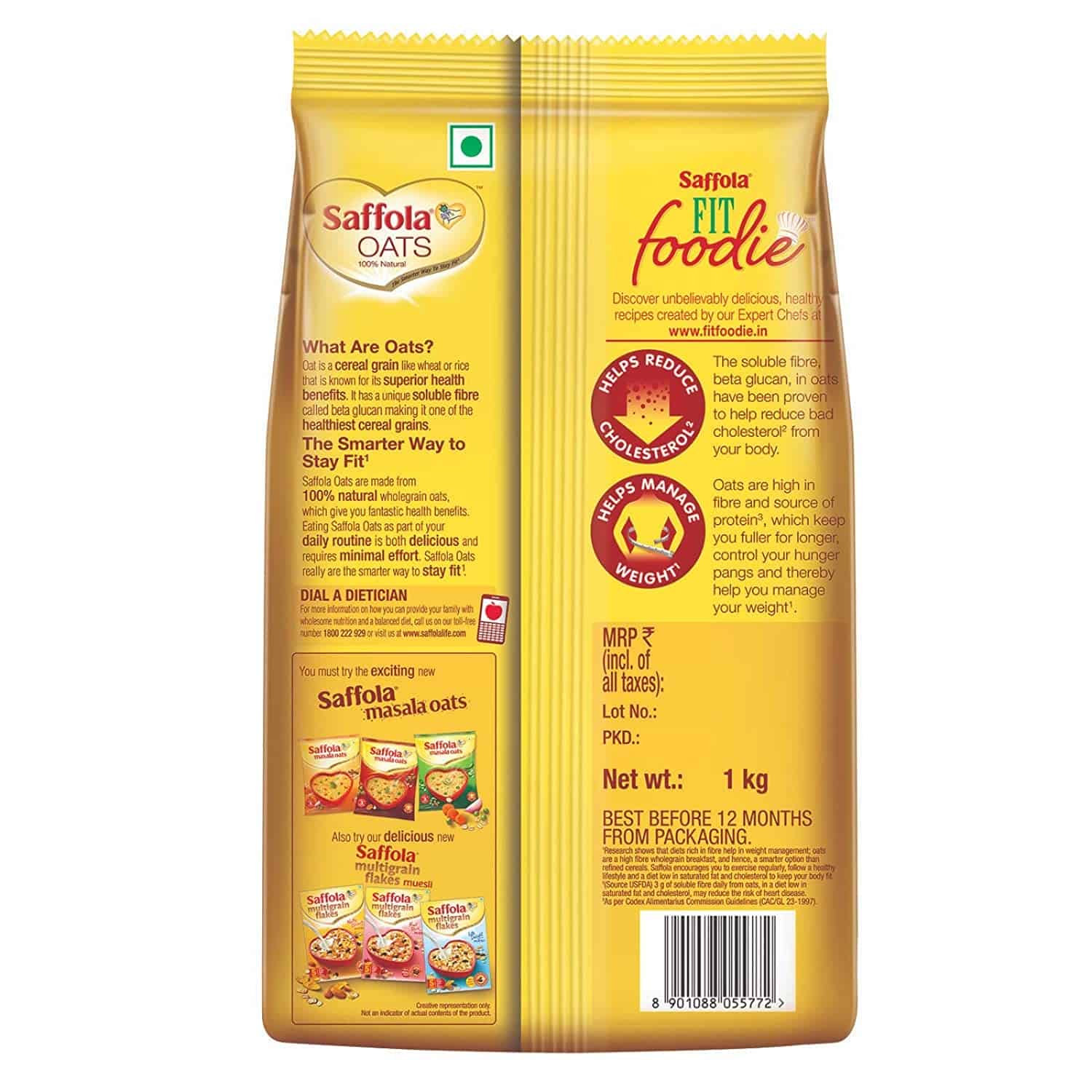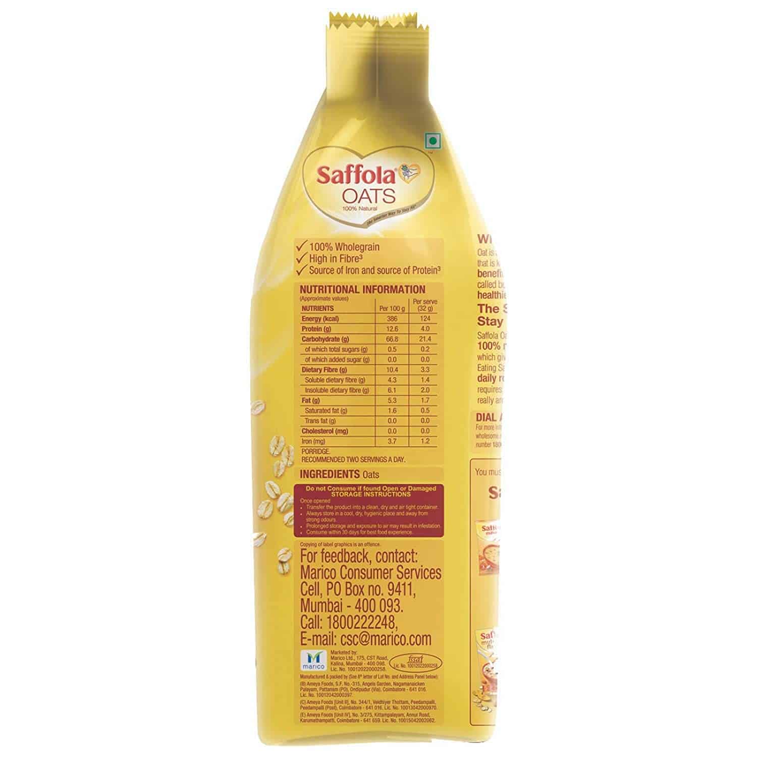 • Enjoy a perfect guilt free snacking anytime, anywhere, with the tasty yet healthy Saffola Oats
