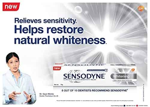 Sensodyne Whitening toothpaste helps in relieving tooth sensitivity while restoring natural whiteness of the teeth