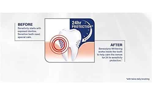 It has a formula that delivers sensitive teeth whitening by polishing away the surface stains, while working deep inside the teeth to build soothing protection around the nerves