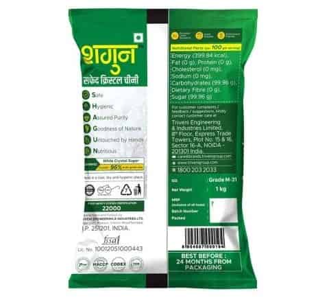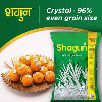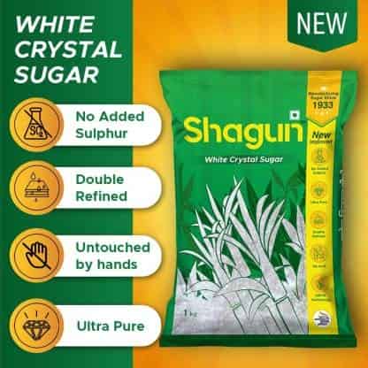 Shagun White Crystal Sugar Ultra pure and free flowing No added sulphur, double refined Hygienically packed, untouched by hands Your everyday choice for tea, coffee and milk