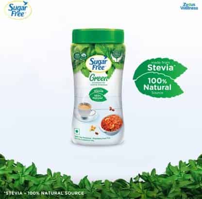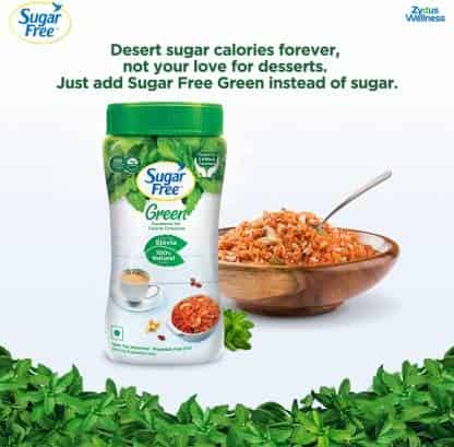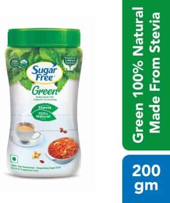 If you’re looking for a natural sweetener that tastes like sugar but has fewer calories, then your search ends here with the Sugar Free Green. This sweetener is made from 100% natural stevia leaves (also known as Meethi Tulsi in India). These leaves are naturally sweet, making them the best alternative to sugar. When you replace 5 g of sugar with 1 spoon of Sugar Free Green, you can save about 20 calories.
