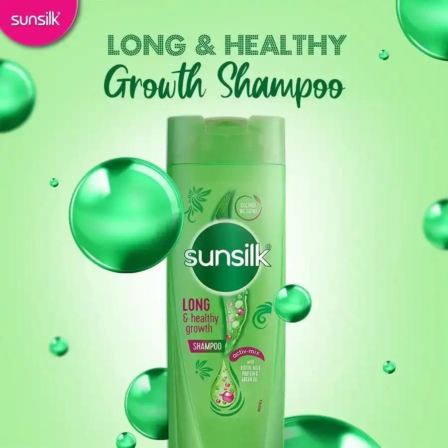 Sunsilk Long and Healthy Growth Shampoo, for longer and healthy-looking hair as gorgeous as you are! The shampoo comes with activ-mix that contains Biotin, Milk Protein and Argan Oil. Biotin is known to support natural hair growth; Milk Protein is known to provide moisture for healthy hair and Argan Oil is known to protect your hair from daily damage. Together, this formula of powerful ingredients keeps hair Healthy looking and long as it grows. (Based on the reduced breakage of naturally growing hair vs non-conditioning shampoo) The shampoo comes with no added parabens.