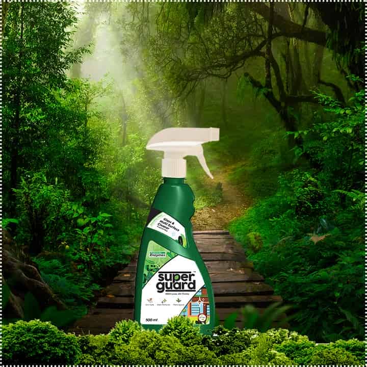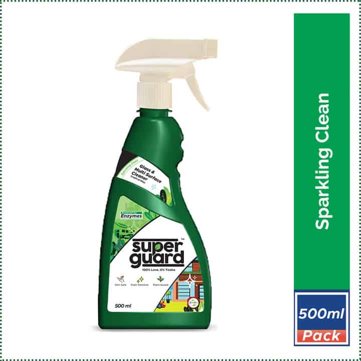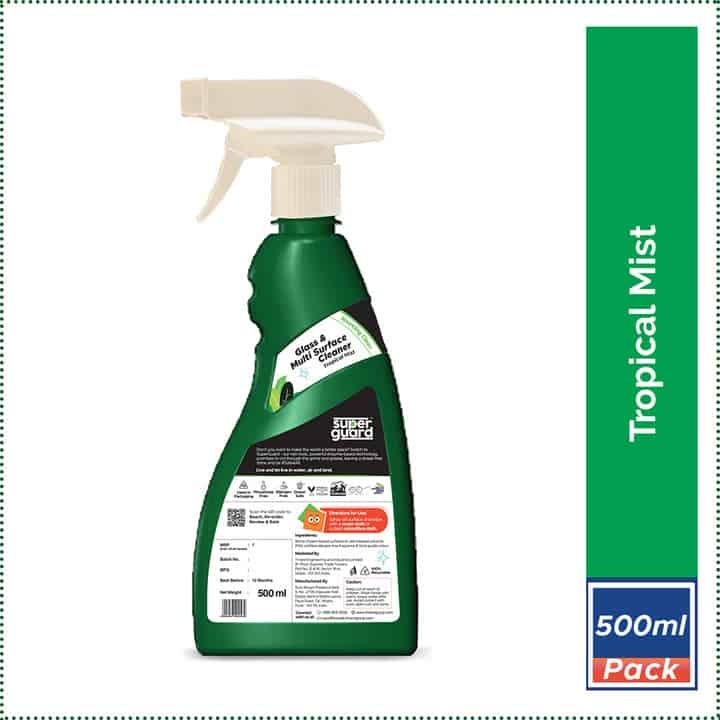 Non-Toxic, Allergen-Free, Stain Remover, Tropical Fragrance, Eco-Friendly SuperGuard Glass & Multi Surface Cleaner with its powerful non-toxic enzyme-based formula promises to cut through the grime and grease, leave a streak-free shine and be #Safe4All - your kids, pets, you and the planet.
