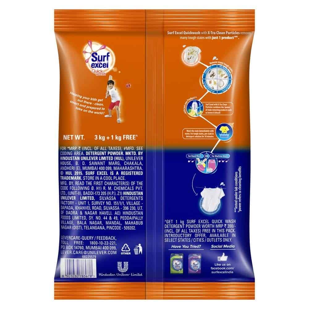 Surf Excel Quick Wash Detergent Powder, 3kg + 1kg