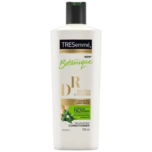 TRESemmé Botanique Detox & Restore Conditioner nourishes weak and damaged hair cuticles reviving your hair and restoring their manageability. It also gently purifies your hair of daily residue build up. This natural conditioner is equipped with an expertly crafted system that is infused with an antioxidant botanical blend of Ginseng and Neem. Ginseng is known to give you healthy scalp and hair while Neem is known for its antibacterial and antifungal properties which help tackle various hair problems. TRESemmé Botanique Detox & Restore Conditioner contains absolutely no parabens or dyes and is safe for use on color-treated hair. It is especially formulated for Indian hair and is safe for use in conjunction with any oil treatments. This nourishing hair conditioner is exactly what you need for smooth, soft hair. So, detox your way to stunning, healthy looking hair now with every wash and get salon quality super smooth hair without the salon price tag! Suitable for both men & women