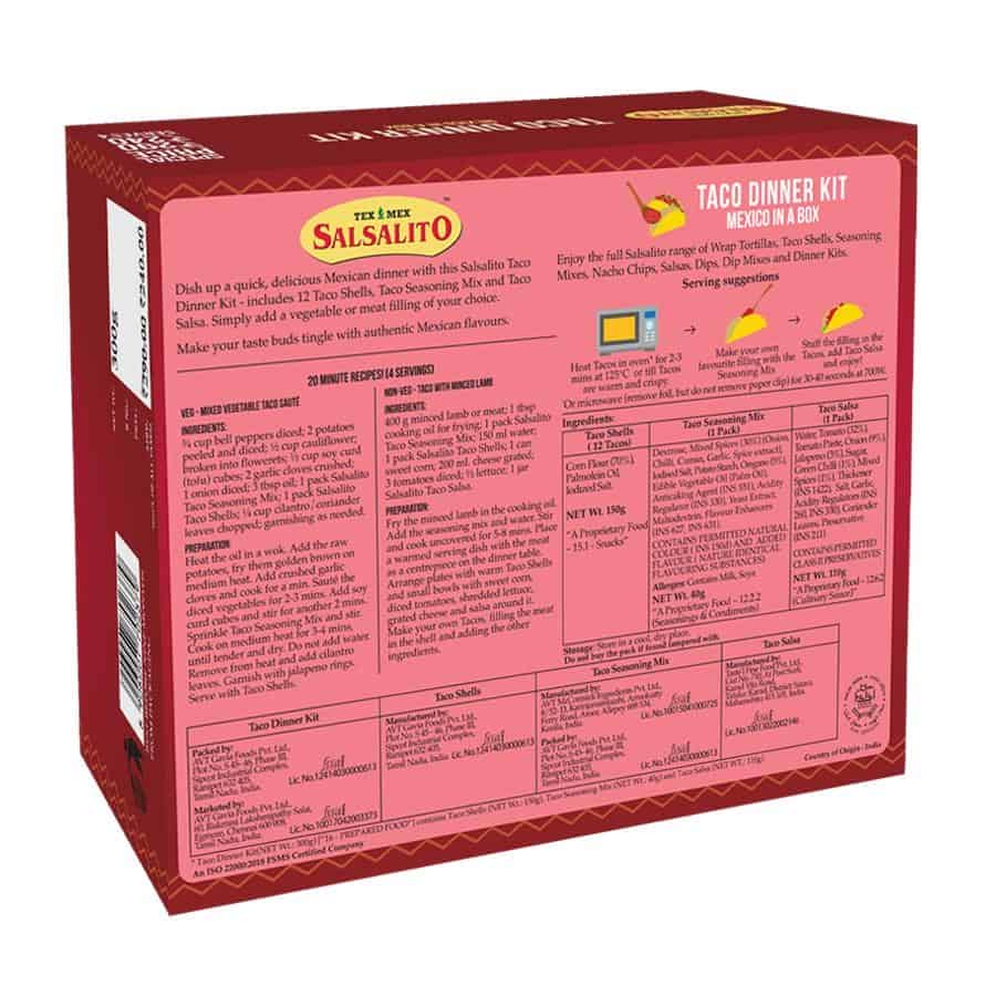 • Kit Contains Crispy Mexican Corn Tortilla,Taco Seasoning Mix and Taco Salsa Hot