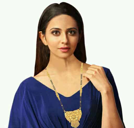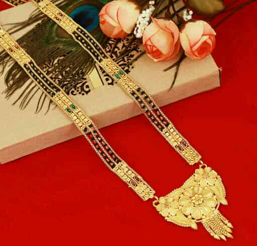 Traditional 20 Inch Long Black Beads One Gram Gold Mangalsutra For Women