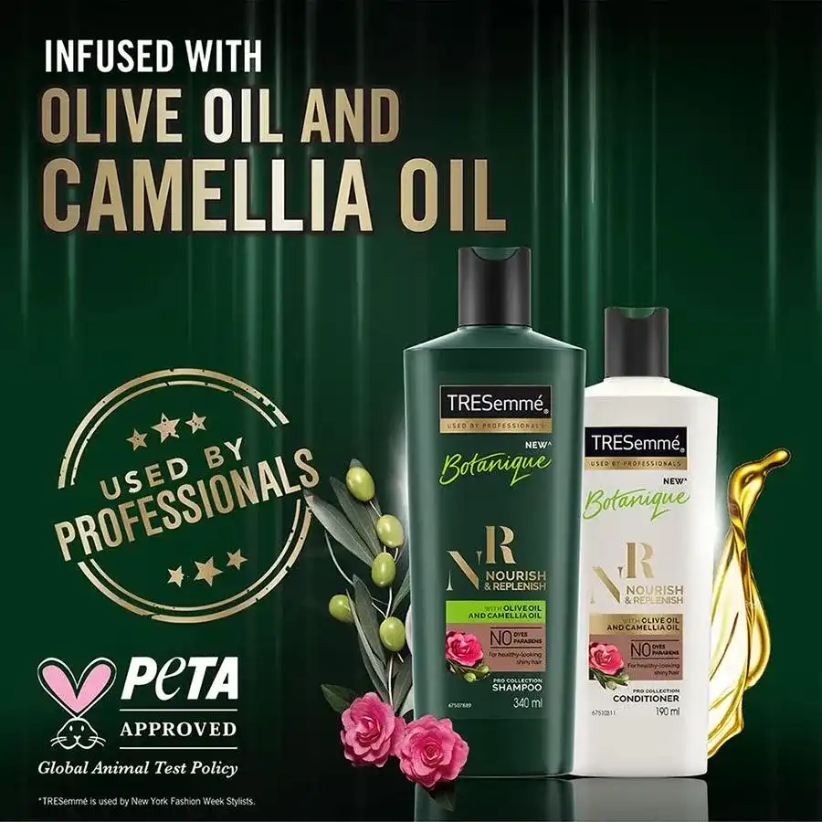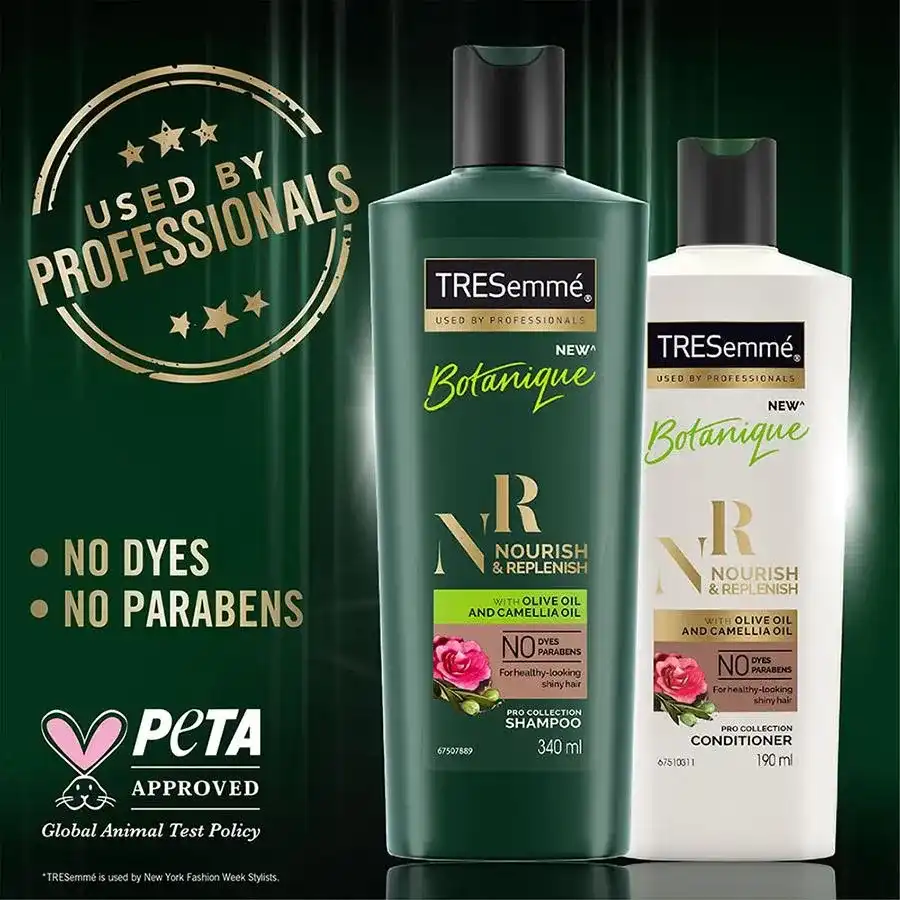 Infused with a rich botanical blend of olive oil and camellia oil, TRESemmé Botanique Nourish & Replenish is a natural shampoo that gently cleanses and nourishes your hair. Rich in Vitamin A, B, C and E, Olive oil and Camellia oil help stimulate hair growth and clean your follicles of collected dirt. They also soften your hair and help in retaining moisture. Botanique Nourish & Replenish Shampoo is equipped with patented micro-moisture technology that smoothens and protects dry hair from damage. Its expertly crafted mild system contains no parabens or dyes and is safe for colour-treated hair. This nourishing shampoo can also control frizz for upto 24 hours. It deeply moisturizes your hair leaving it beautifully soft, smooth and shiny. TRESemmé Botanique Nourish & Replenish Shampoo is specially formulated for Indian hair and is suitable for use in conjunction with oil treatments. Buy today to get softer, smoother and healthier-looking salon quality hair without the salon price tag! For best results, use this shampoo with TRESemmé Botanique Nourish & Replenish Conditioner. Suitable for both men and women.