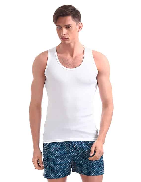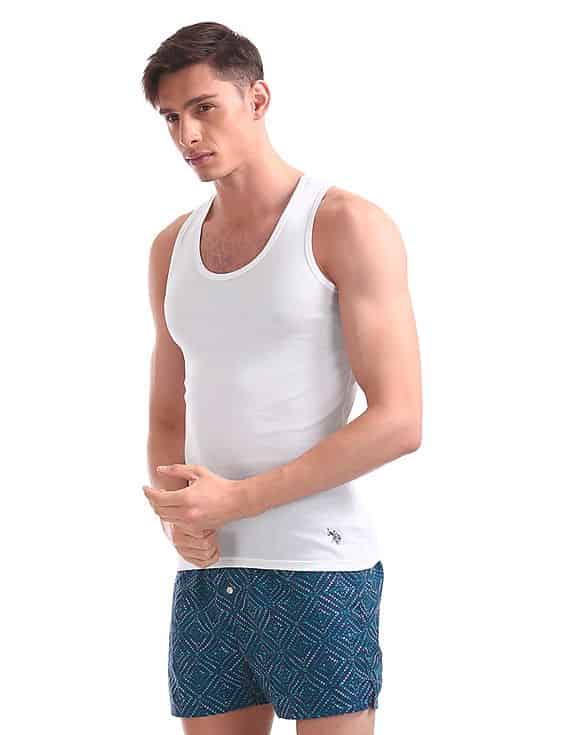 U S Polo Men White Round Neck Essential Seamless Cotton Vest Innerwear(I661) Pack Of 1