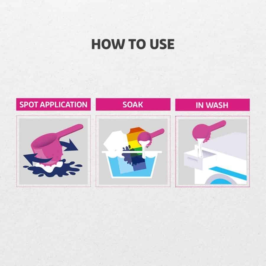 • For very tough stains apply Vanish directly on stain and rub before washing with laundry detergent