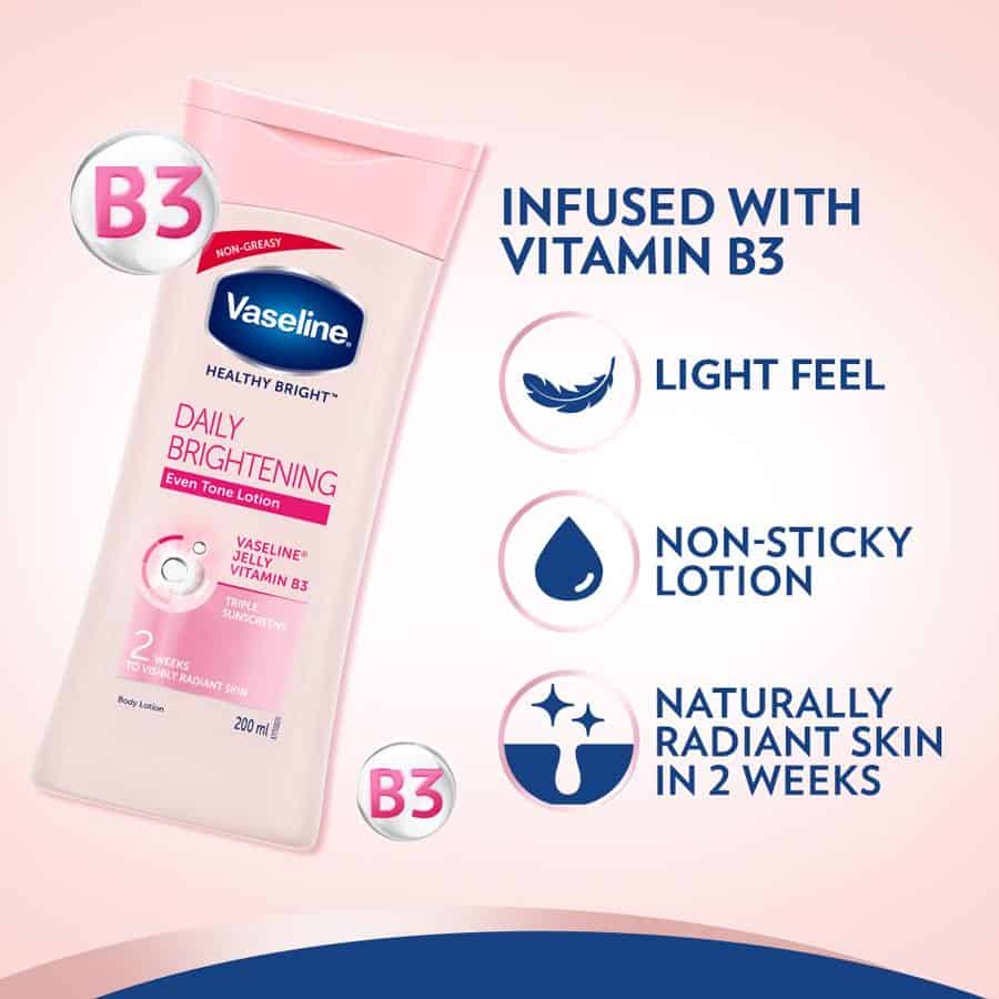 • Contains Vitamin B3 and Triple Sunscreens, the lotion visibly brightens dull, dry skin