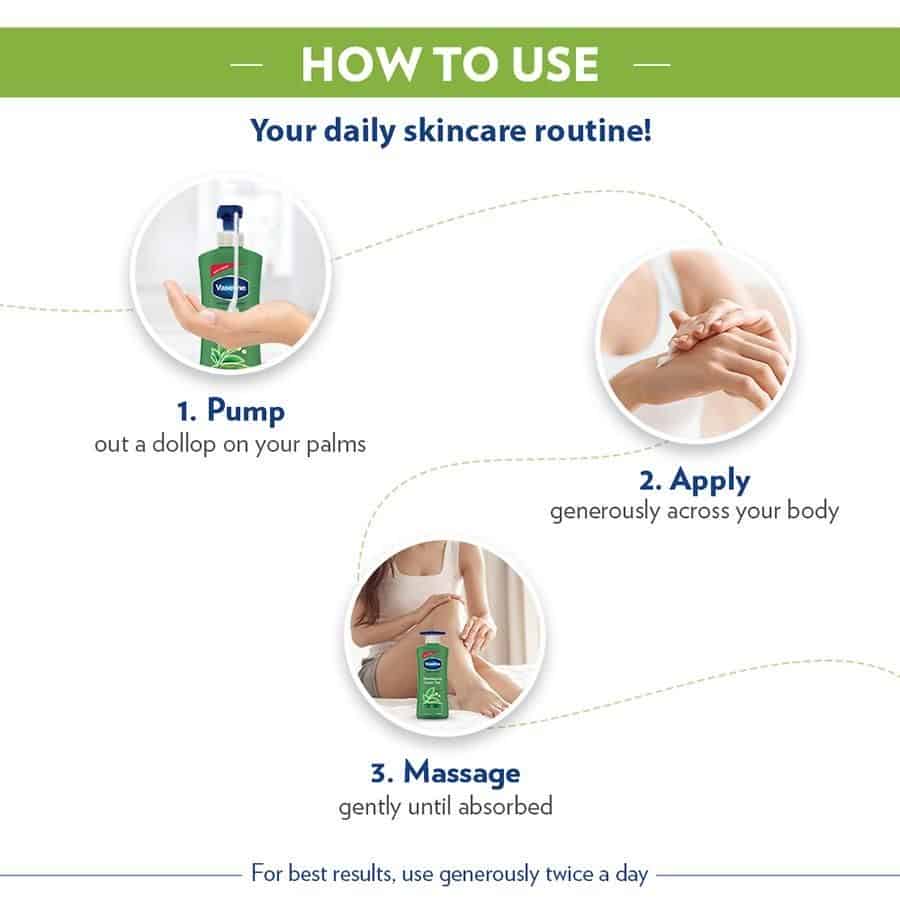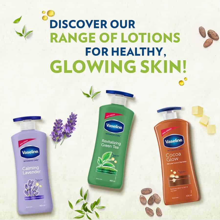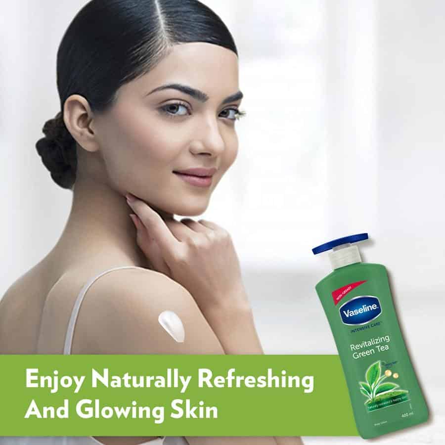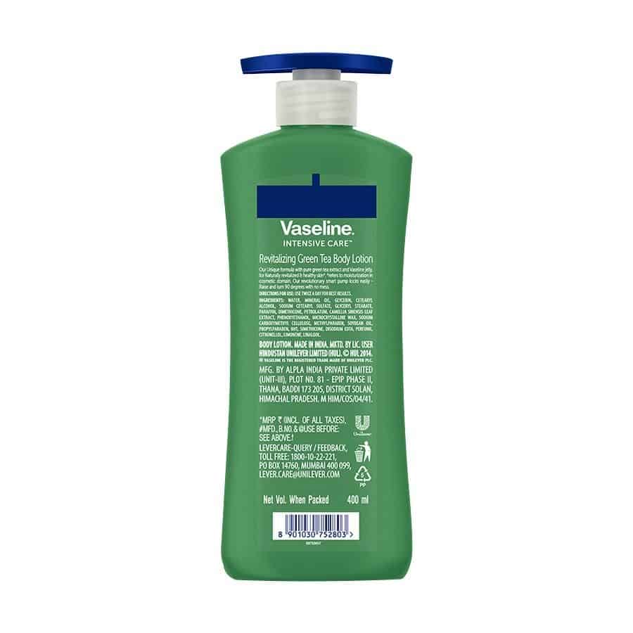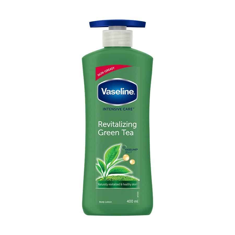 Looking after your skin’s health is of utmost importance because extra effort always shows, even on your skin. That’s why you should pay extra attention to what you choose for your skin. Presenting New Vaseline Revitalizing Green Tea Body Lotion, specially formulated with 100% Pure Green Tea extract and extra goodness of Vaseline jelly, which gives your skin that little extra to keep it glowing and ready for anything. This body lotion refreshes dry skin for naturally glowing, naturally healthy skin* (*refers to moisturization in the cosmetic domain). Its non-greasy formula conditions your skin while refreshes your senses with a non-greasy feel. Also, its clinically proven formula keeps your skin moisturized for 48 Hours. Green Tea is a popular antioxidant known for multiple skin benefits. With refreshing scent and Green Tea extract, Vaseline Revitalizing Green Tea lotion goes deep into the skin leaving it soft, supple and refreshed. Best suited for: dry skin, dull skin, rough skin.
