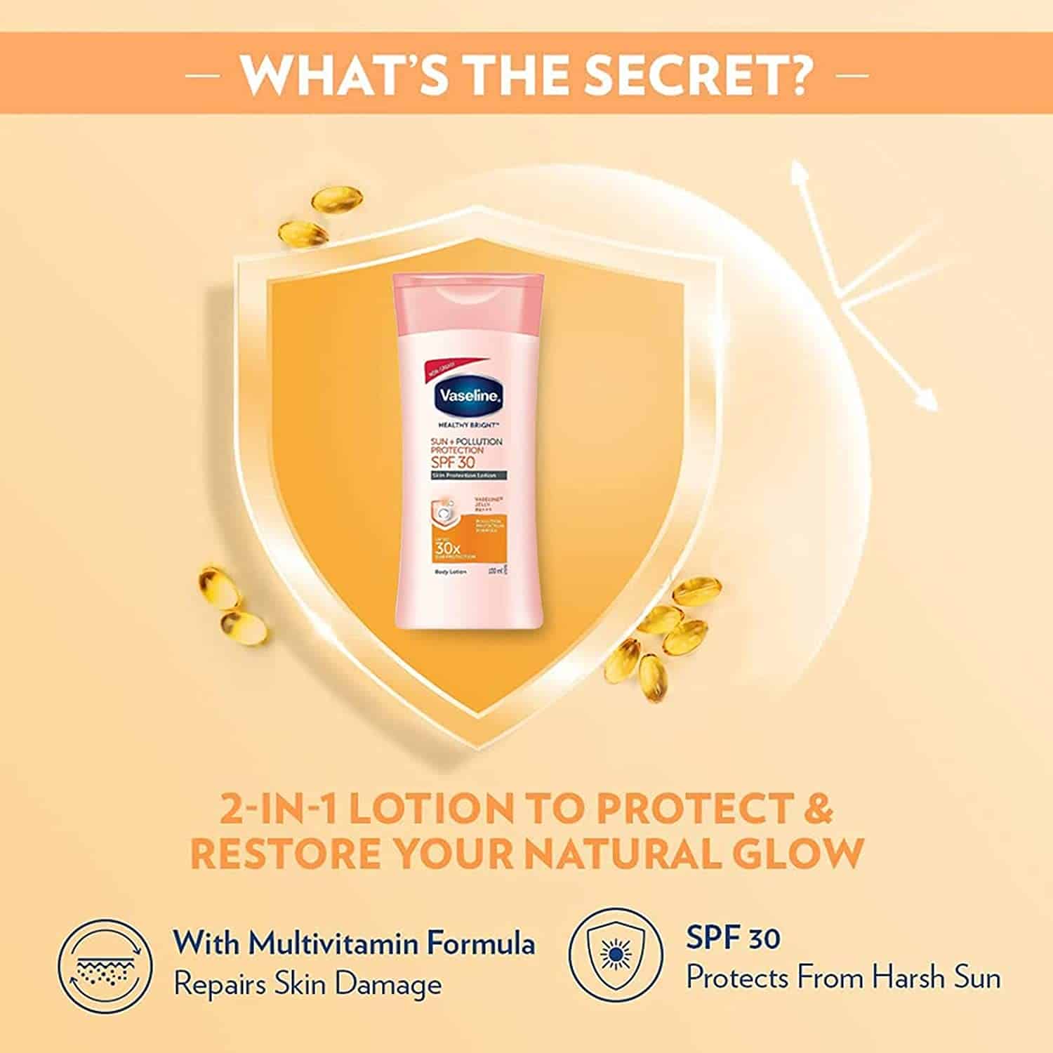 • 2-in-1 Lotion - With Multivitamin Formula that repairs skin damage and SPF 30 that protects skin from harsh sun rays