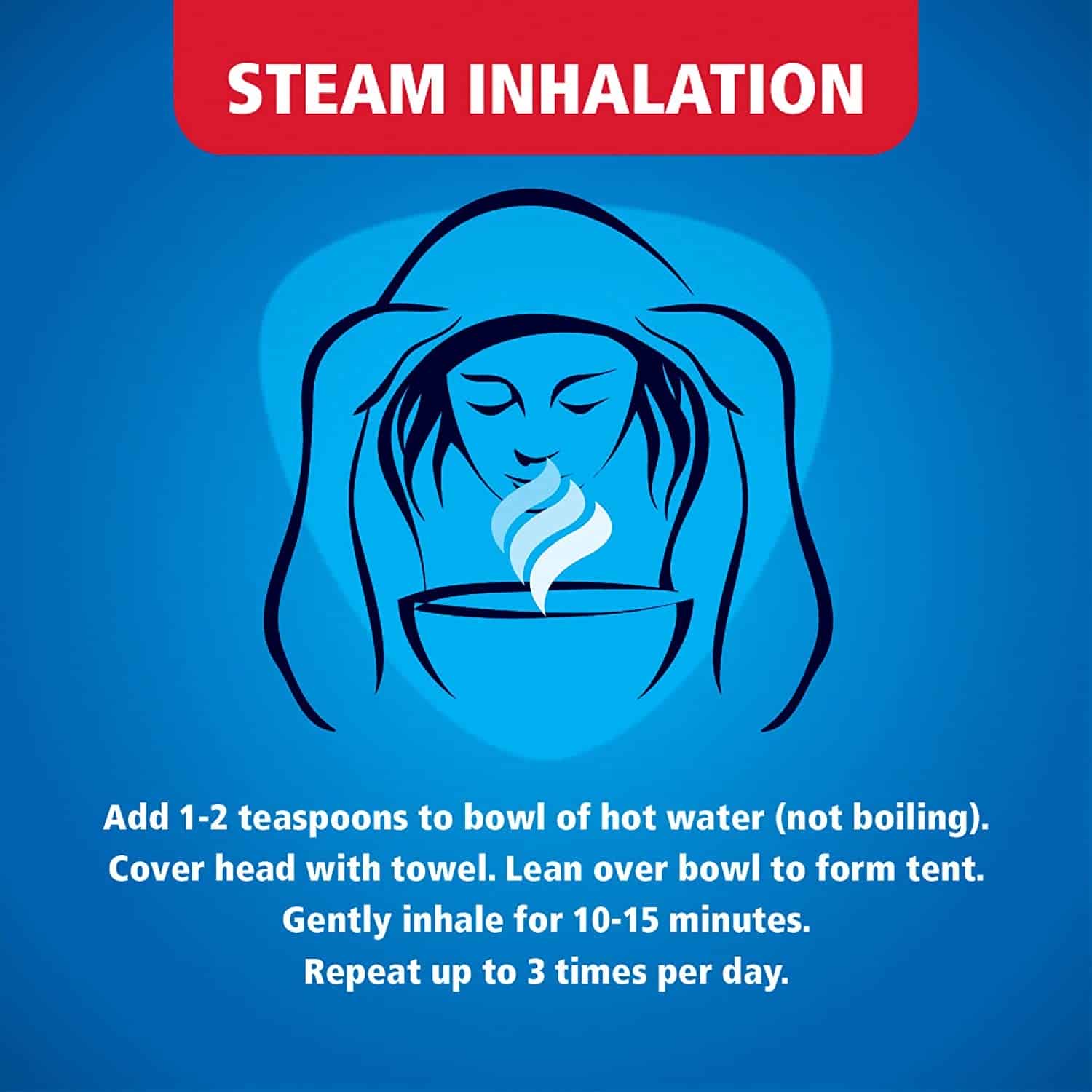 Suitable for steam inhalation on adults and children more than 6 years. Take one scoop of Vicks Vaporub and add it to hot water and inhale the vapors to get instant relief from the 6 Cold and Cough symptoms