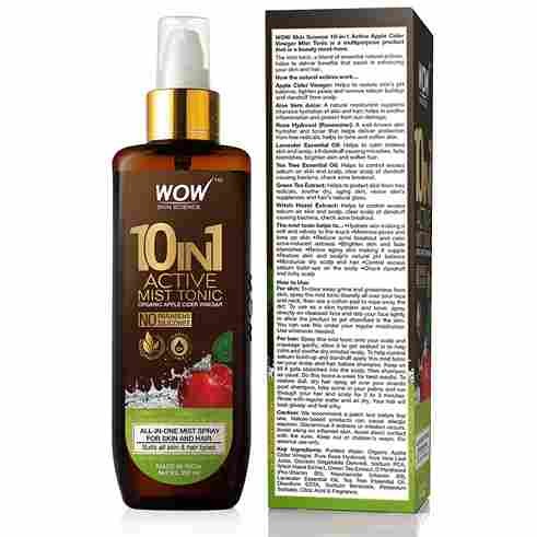 Wow Skin Science 10 in 1 Miracle Apple Cider Vinegar Mist Tonic improves skin hair and scalp health too busy to spend hours pampering your skin, hair and scalp with different products. You need wow skin science 10-in-1 miracle apple cider vinegar mist tonic a superb multipurpose, product formulated to enhance your skin, hair and scalp. This enriching blend of 9 exceptional beauty care bioactive - apple cider vinegar, aloe vera juice, rose hydrosol, witch hazel extract, green tea extract, pro-vitamin b5, vitamin b3 plus lavender and tea tree essential oils - comes packaged in a sleek and handy spray mist bottle. Use it cleanse, tone, balance and hydrate skin, reduce acne breakouts, remove scalp buildups, check dandruff and enhance hair gloss. Apple cider vinegar. Restores natural ph balance of skin and scalp, tightens open pores, reduces acne breakouts, fades blemishes, smoothens rough hair cuticles, loosens and removes scalp buildups, kills dandruff causing microbes. Aloe vera gel - gives intensive hydration to skin and hair, soothes inflammation, reverses sun damage. Rose hydrosol (rosewater) - hydrates, tones and moisturizes, gives antioxidant protection from free radicals. Lavender essential oil - soothes skin, kills dandruff causing microbes, fades blemishes, brightens skin, softens hair. Tea tree essential oil - disinfects skin, kills dandruff causing microbes, checks acne and breakouts. Green tea extract - fights free radicals, evens skin tone. Witch hazel extract - natural astringent, tightens open pores, reduces acne.