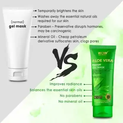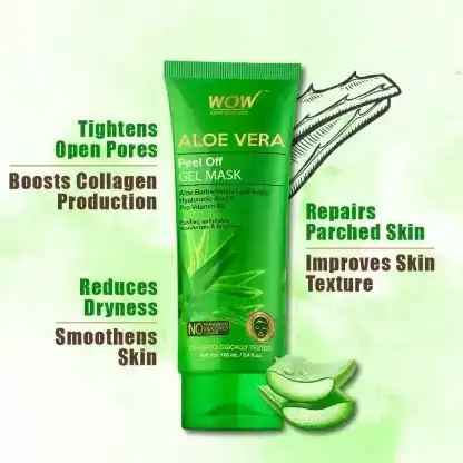 WOW Skin Science Aloe Vera Peel-Off Gel Mask draws out daily dirt and grime from the skin without hurting the natural moisture and oil balance of the skin. Regular use ensure skin is free of blackheads and whiteheads. Helps prevent acne flare-ups and calm skin redness.