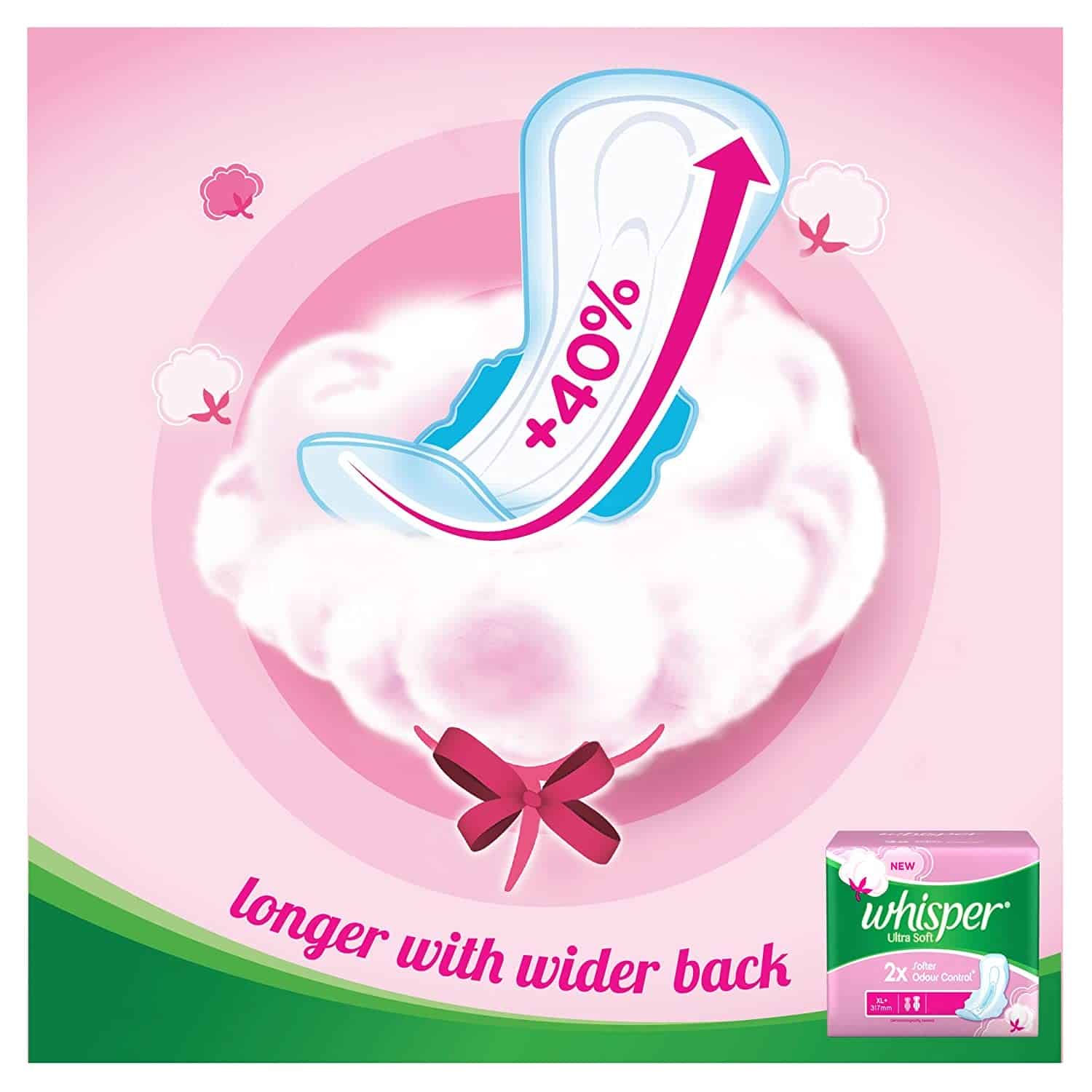 Whisper Ultra Soft XL Plus Sanitary Pads, 15 Pads