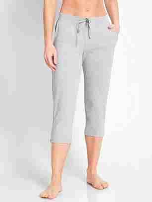 Women's Super Combed Cotton Elastane Stretch Slim Fit Capri with Side Pockets Light Grey Melange #1300