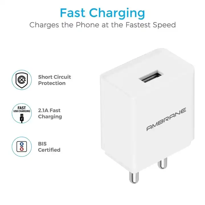 If you need a compact handy charger that can be used effortlessly everyday and with almost all devices, Ambrane AWC-47 Wall Charger is perfect for you. This charger is technologically sound and BIS approved to meet all your daily charging needs with its output capacity of 2.1 A. It comes with an accompanying micro USB charging cable for convenient use.