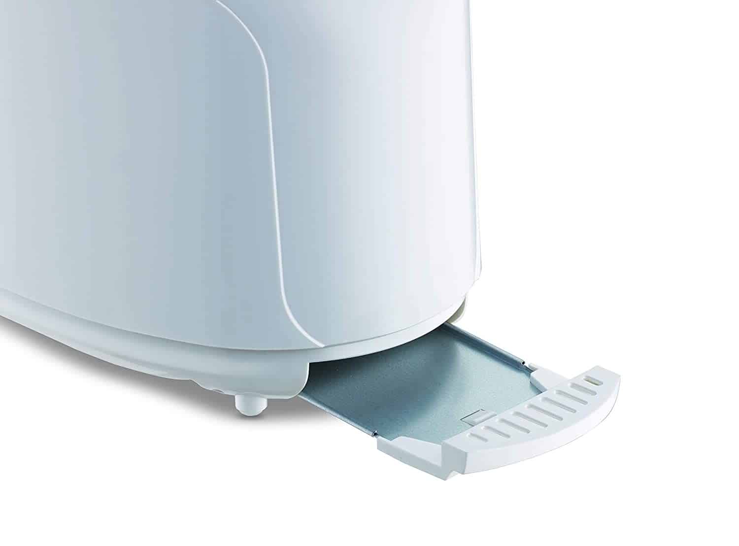• The appliance comes with a removable crumb tray to keep it clean along with a cord storage space to keep the cord in place