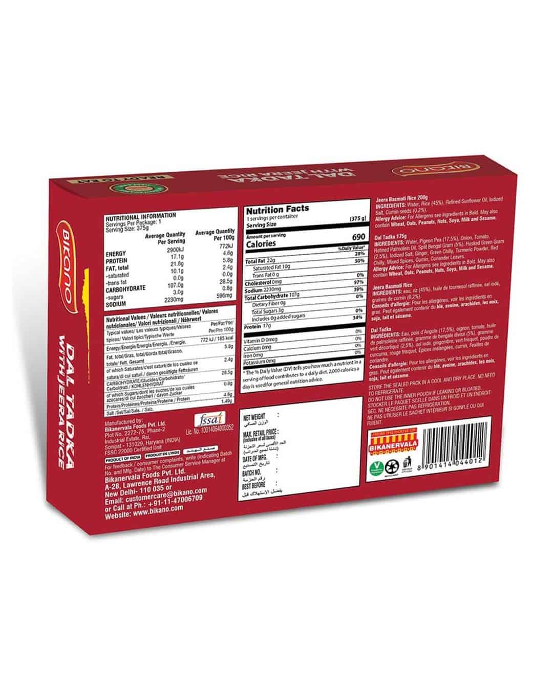 READY TO EAT Yellow lentils cooked in mild spicy curry, with cumin flavoured Rice. Awesome food from the house of Bikanervala and Bikano. Relish and enjoy the same freshness as your home made food. Store the sealed pack in cool and dry place. There is no need to refrigerate