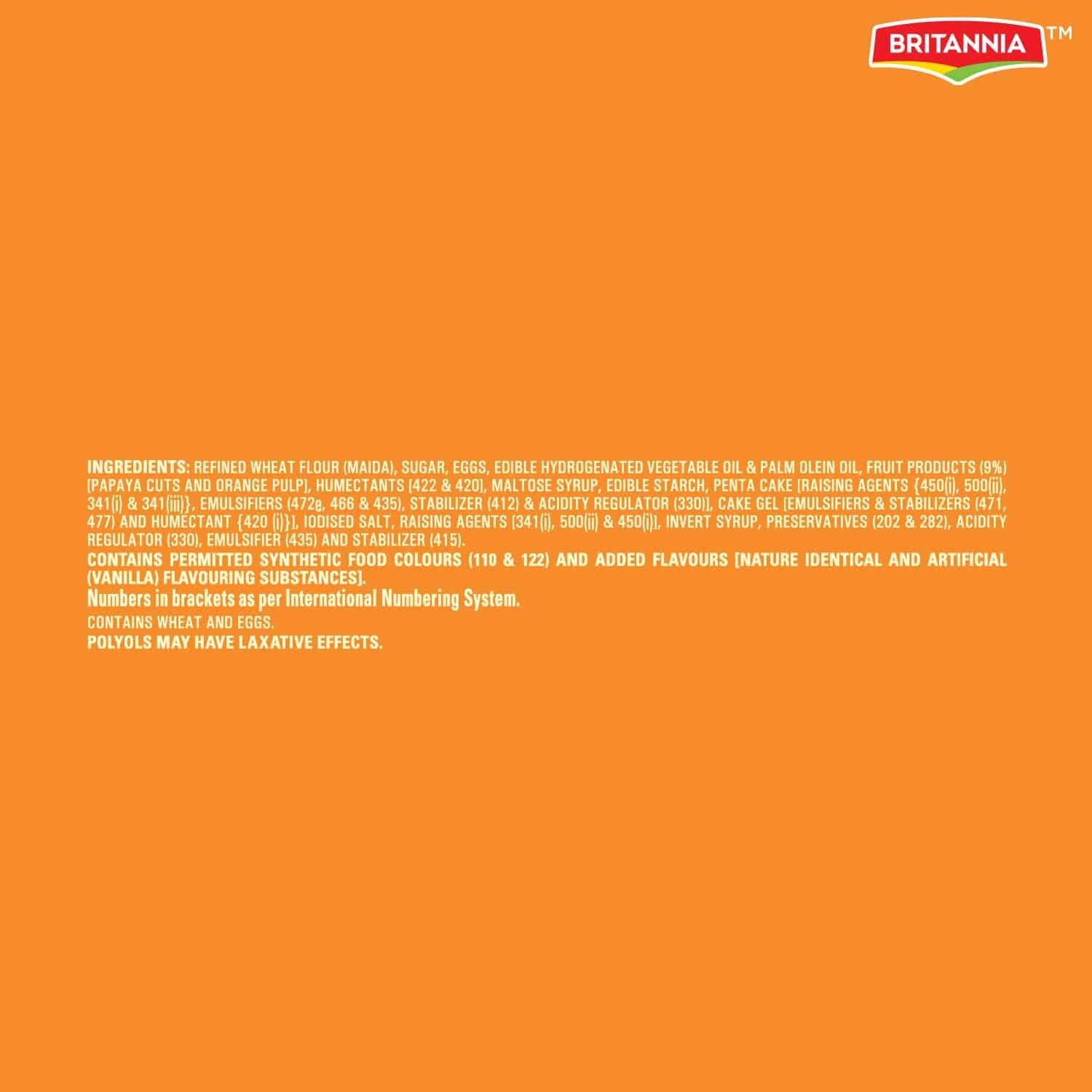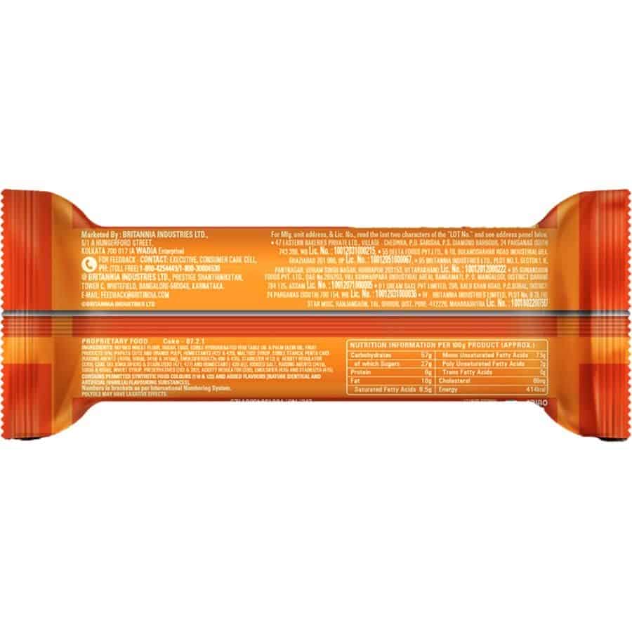 Britannia Orange Cake has soft and delicious cake slices with the goodness of tangy oranges, milk and eggs. With the best all-natural ingredients, each bite gives mouth-watering flavour. Britannia Cakes have soft spongy and fluffy slices that deliciously melts in your mouth. Believing in delivering fresh and healthy products, Britannia India manufactures some of India's favourite cakes.
