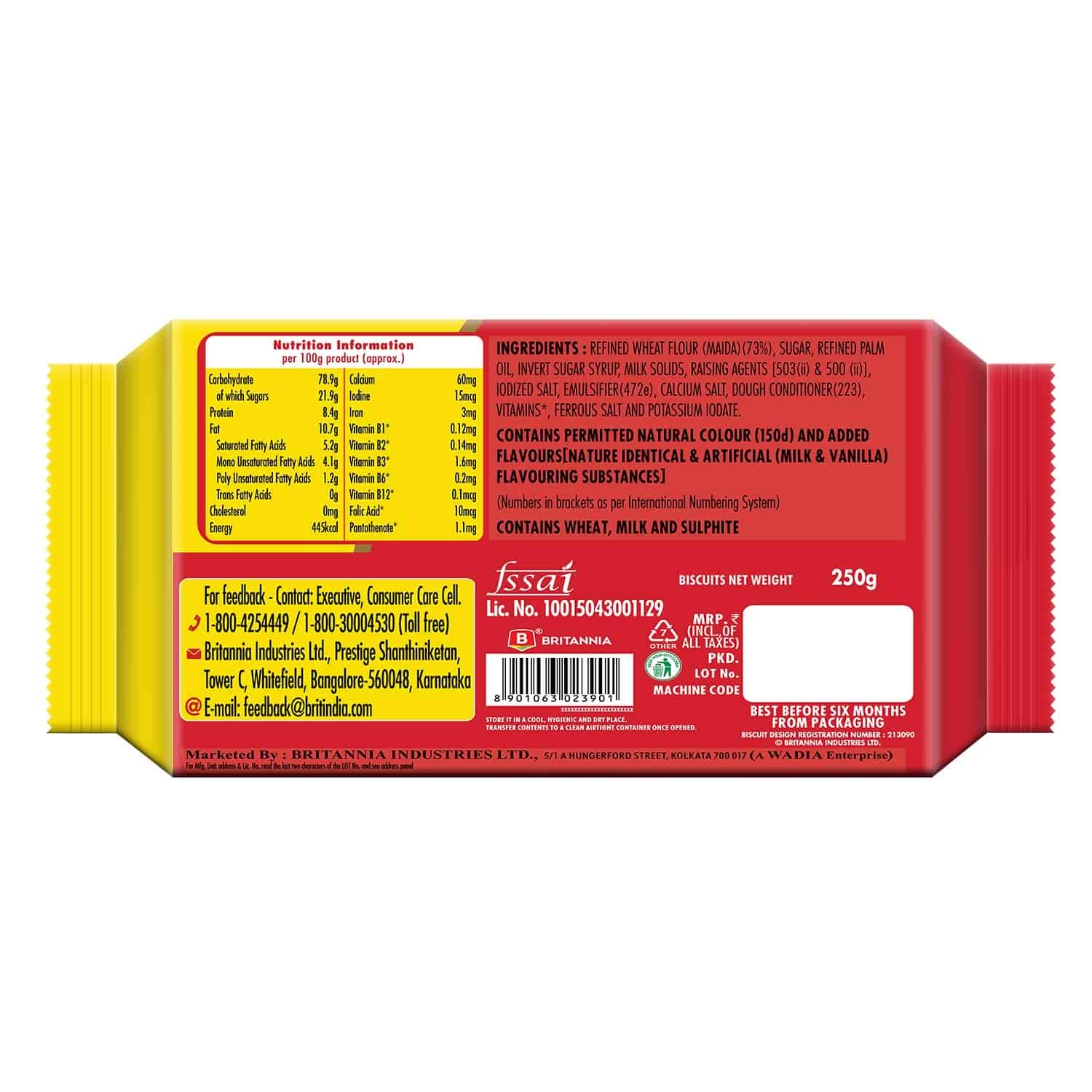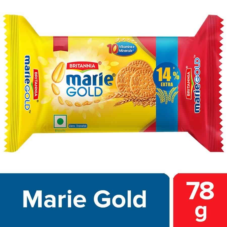 Britannia Marie Gold Biscuits are crisp and light biscuits packed with the goodness of vitamins and minerals. Being low fat and zero cholesterol snacks, Marie Gold biscuits act as a perfect companion for your cup of tea. Britannia biscuits and cookies for long has been a part of every home, sharing those moments of joy Believing in delivering fresh and healthy products, Britannia India manufactures some of India's favourite brands like 50-50, Tiger, NutriChoice, Bourbon, Good Day, Milk Bikis and Little Hearts.