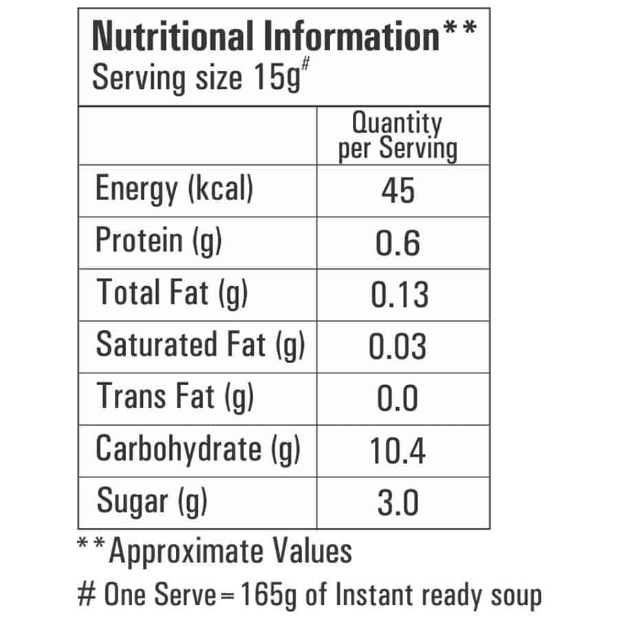 Ek Minute Mein Hunger Ki Bajao! The quickest and most delicious way to bust those hunger pangs is with Chings Instant Soups - Indias No. 1 Desi Chinese Soups. With just one cup of hot water and in just one minute you can relish a delicious garam-a-garam cup of Chings Instant Soup, anytime, anywhere. You can choose between the creamy and wholesome Sweet Corn, the hearty Mix Veg with crunchy veggie bits, the classic rich Tomato, the spicy Hot Sour and the zesty Manchow with veggies. So delicious and so satisfying!
