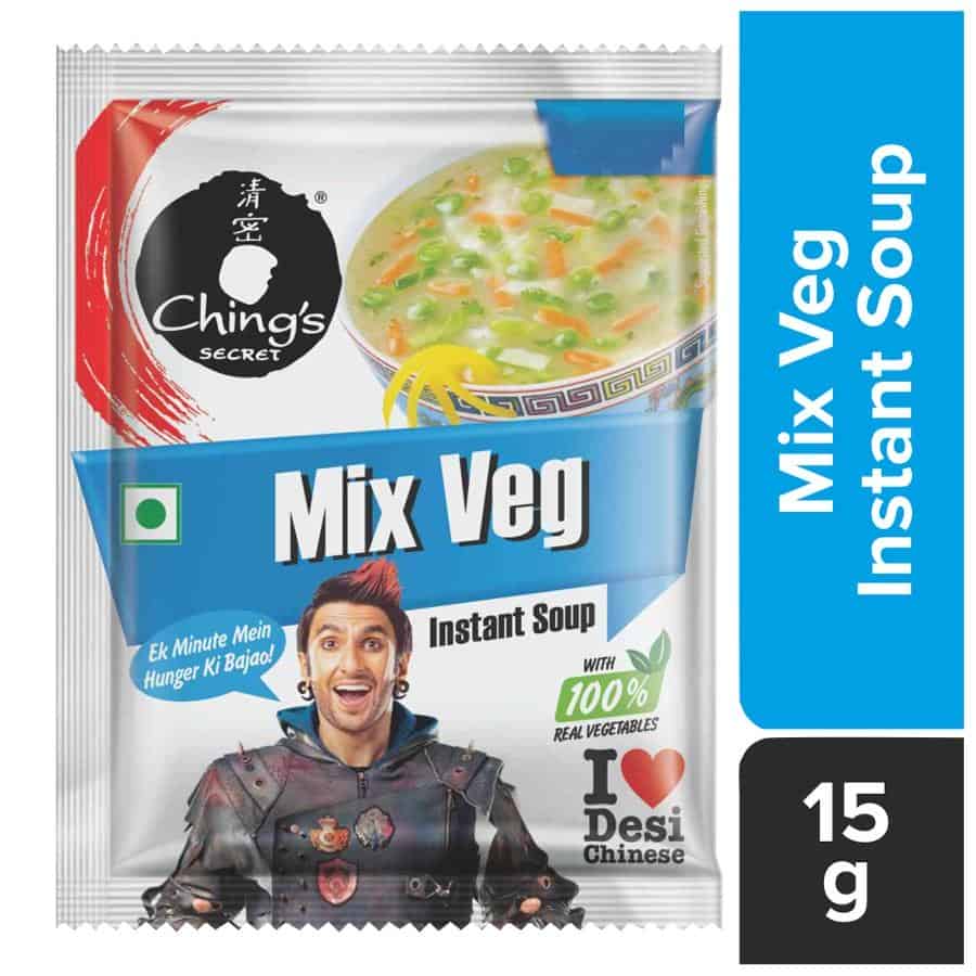 Ek Minute Mein Hunger Ki Bajao! The quickest and most delicious way to bust those hunger pangs is with Chings Instant Soups - Indias No. 1 Desi Chinese Soups. With just one cup of hot water and in just one minute you can relish a delicious garam-a-garam cup of Chings Instant Soup, anytime, anywhere. You can choose between the creamy and wholesome Sweet Corn, the hearty Mix Veg with crunchy veggie bits, the classic rich Tomato, the spicy Hot Sour and the zesty Manchow with veggies. So delicious and so satisfying!