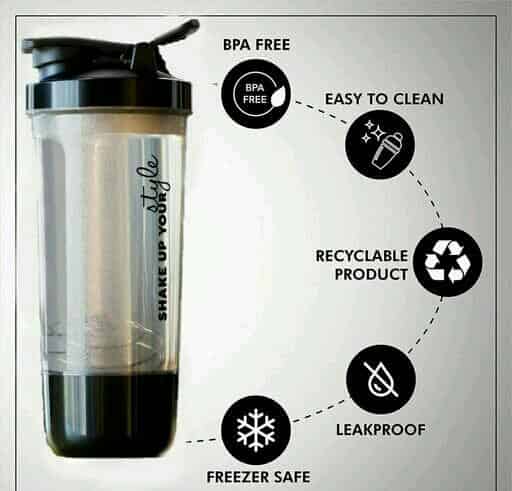 Description : Perfect for protein shakes,smoothies,pancake batter and more. Leak proof,water bottle + shaker for preparation