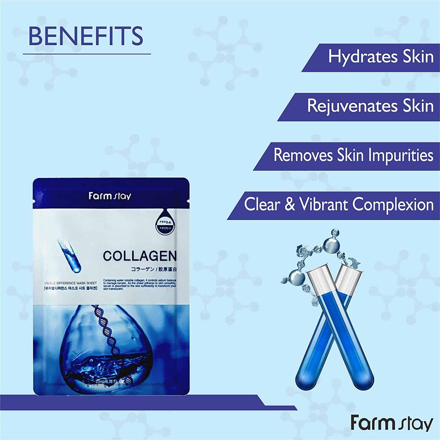 • BENEFITS : Sheet mask helps in removing toxins, dirt, oil, deeply hydrates without making skin sticky, calms irritation, glowing and anti aging