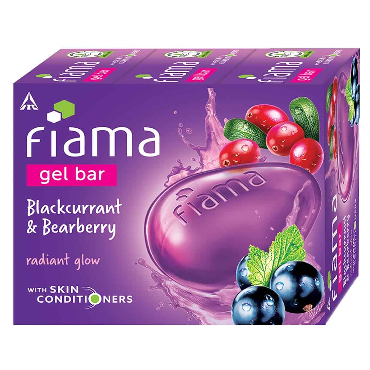 Fiama Gel Bar Blackcurrant and Bearberry for radiant glowing skin, with skin conditioners, 125 g (Pack of 3)