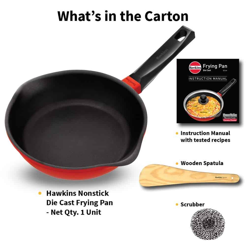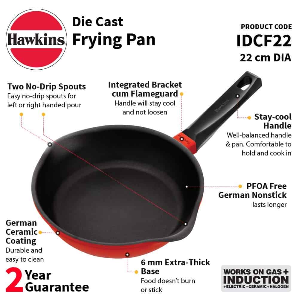 Hawkins 22 cm Frying Pan, Die Cast Non Stick Fry Pan, Ceramic Coated Pan Small Frying Pan, Red (IDCF22)