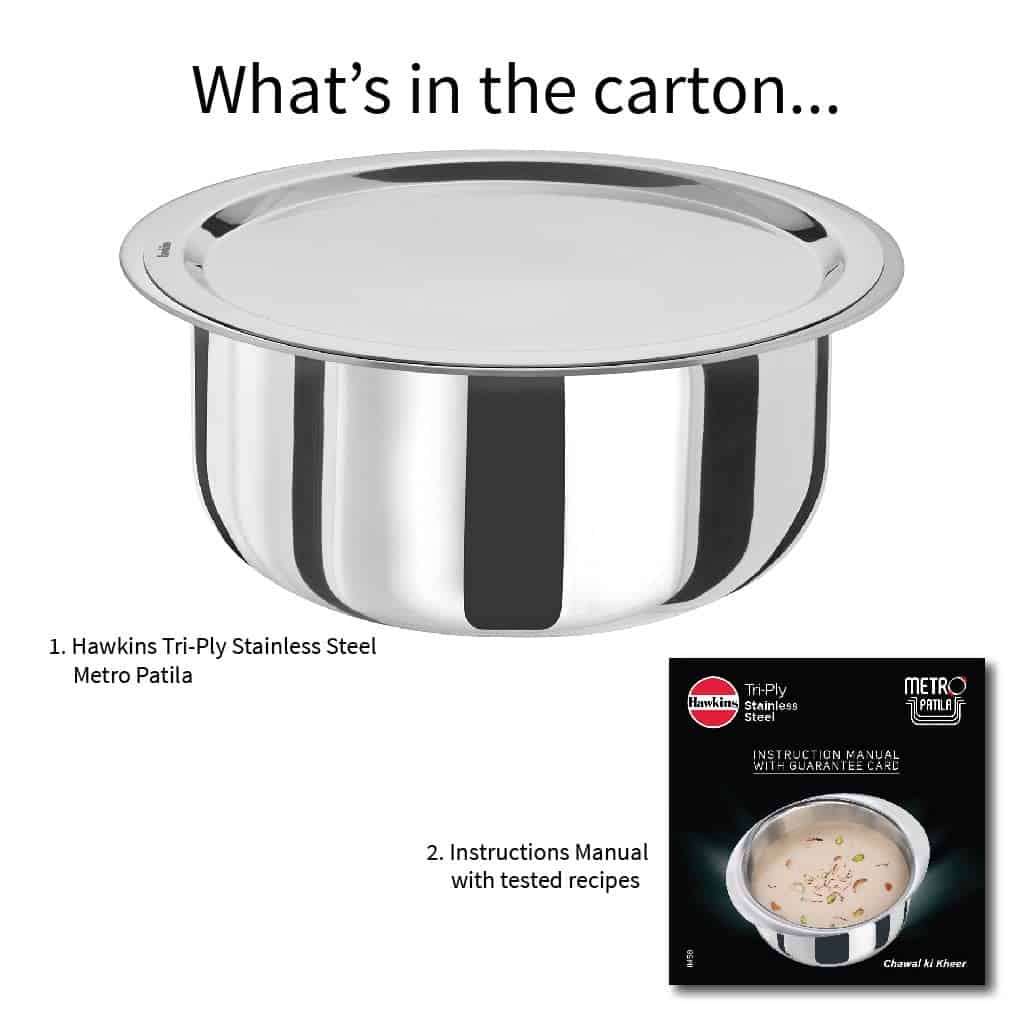 • 2.5 mm Thick Hawkins Tri-Ply Stainless Steel - Food-grade, hygienic, spreads heat evenly
