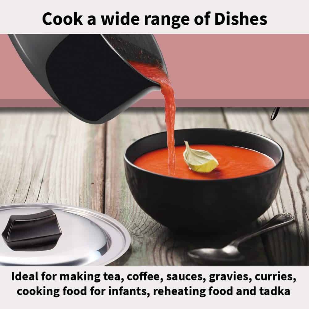 It has a strong, stay-cool plastic handle fixed on sturdy stainless