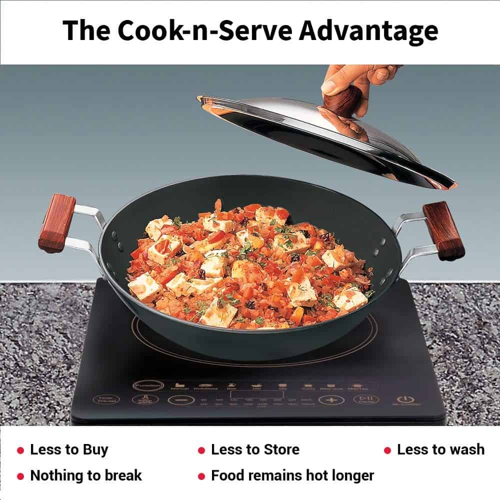 The Pan is ideal for sautéing and stir-frying foods using minimal
