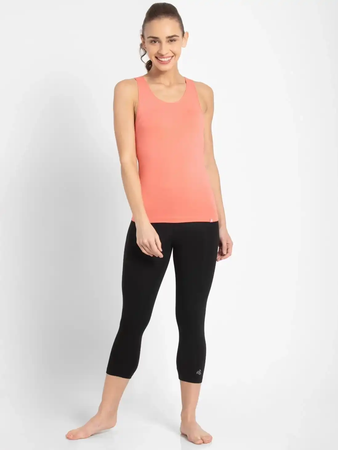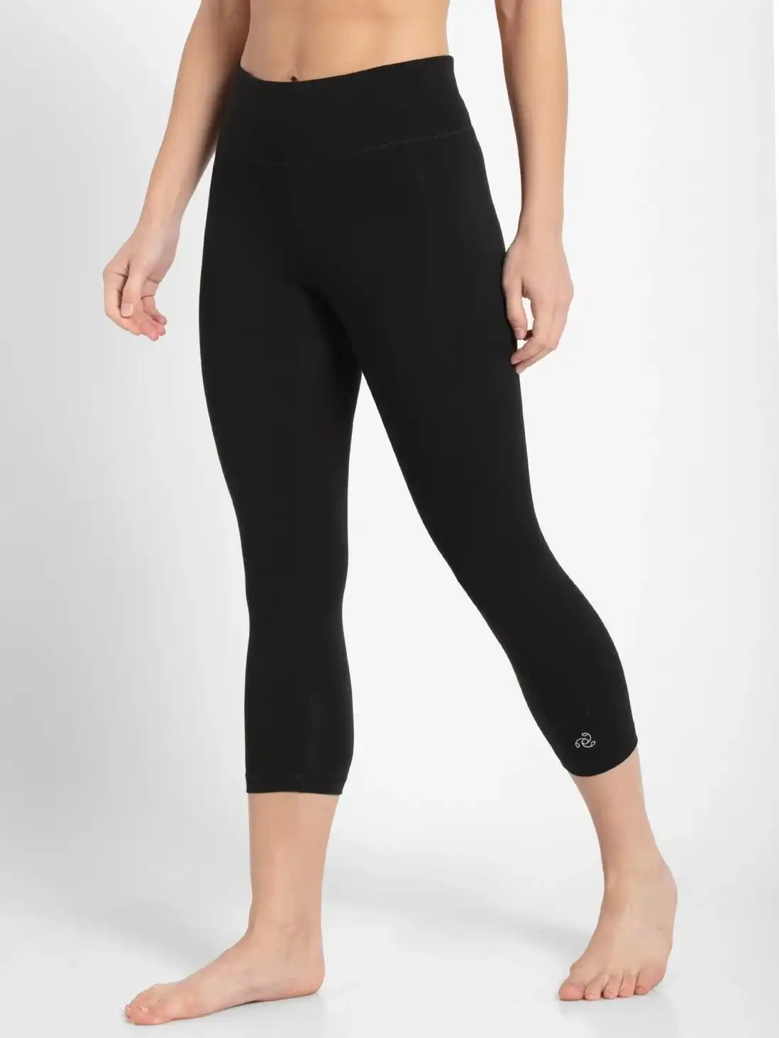 Jockey Sports Capri Pants for Women with Coin Pocket & Elasticated Waistband - Black & Ruby, Style #1391