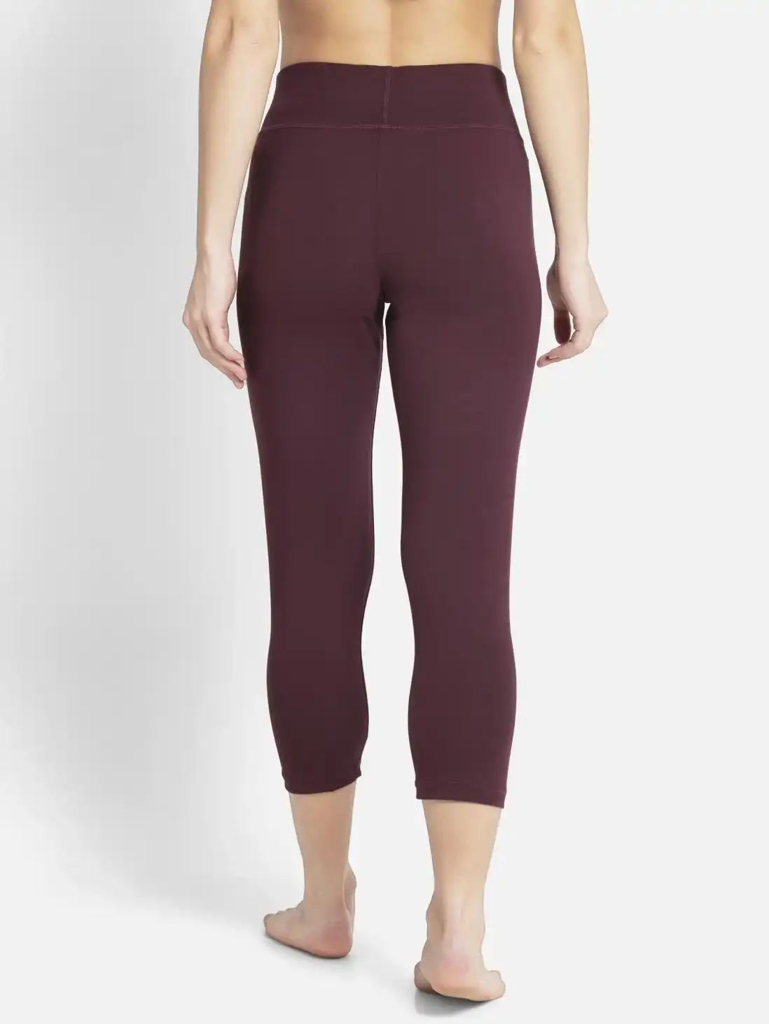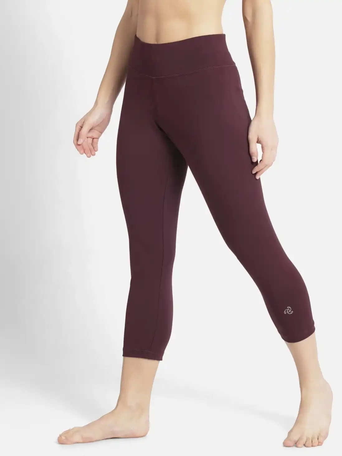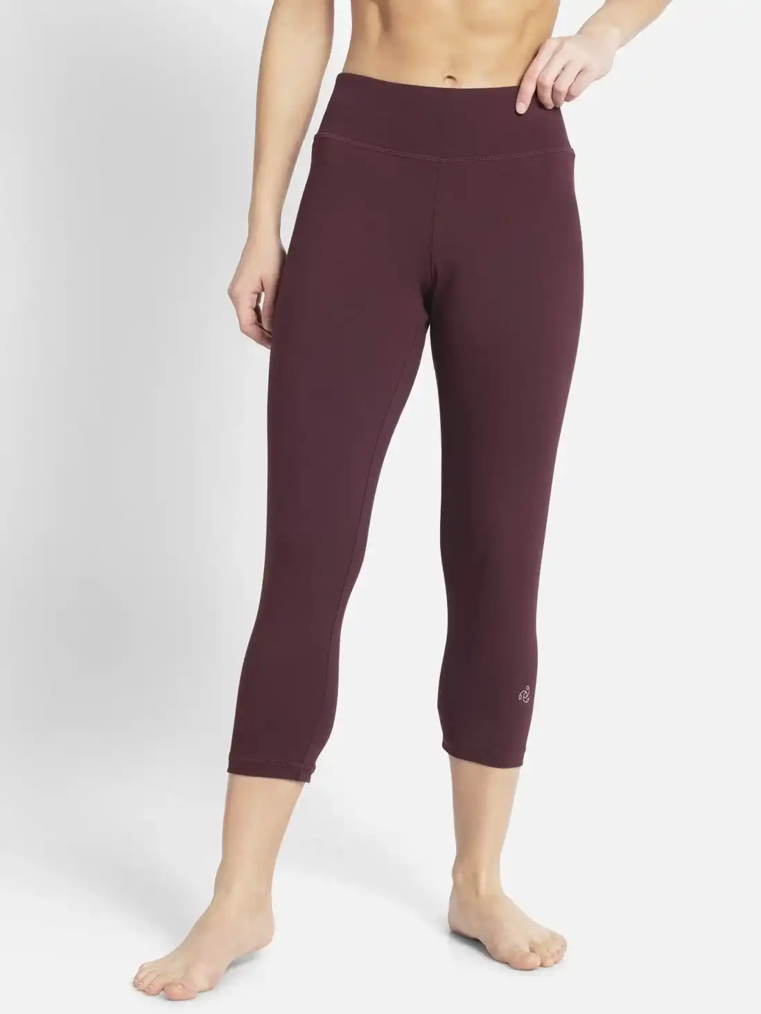Jockey Sports Capri Pants for Women with Coin Pocket & Elasticated Waistband - Wine Tasting & Biscay bay, Style #1391