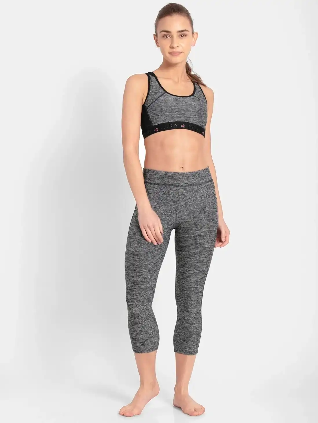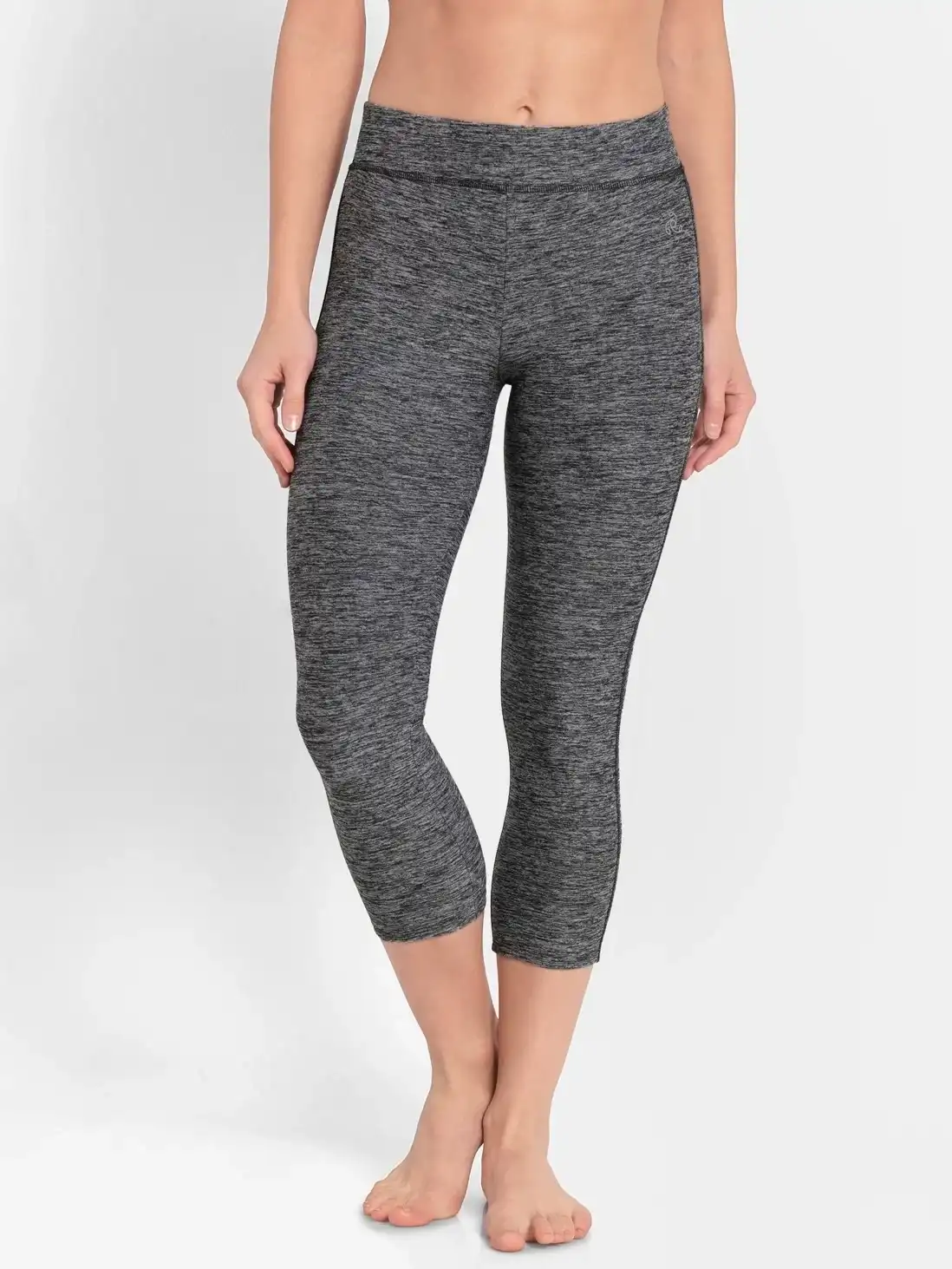 Jockey Capri Pants for Women with Pocket & Elasticated Waistband - Black Melange, Style #AP24
