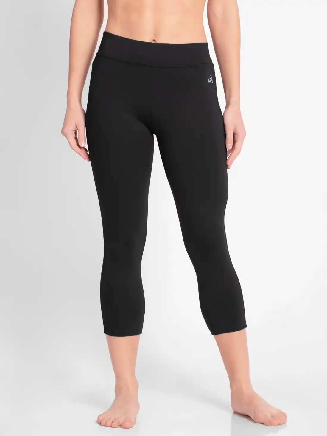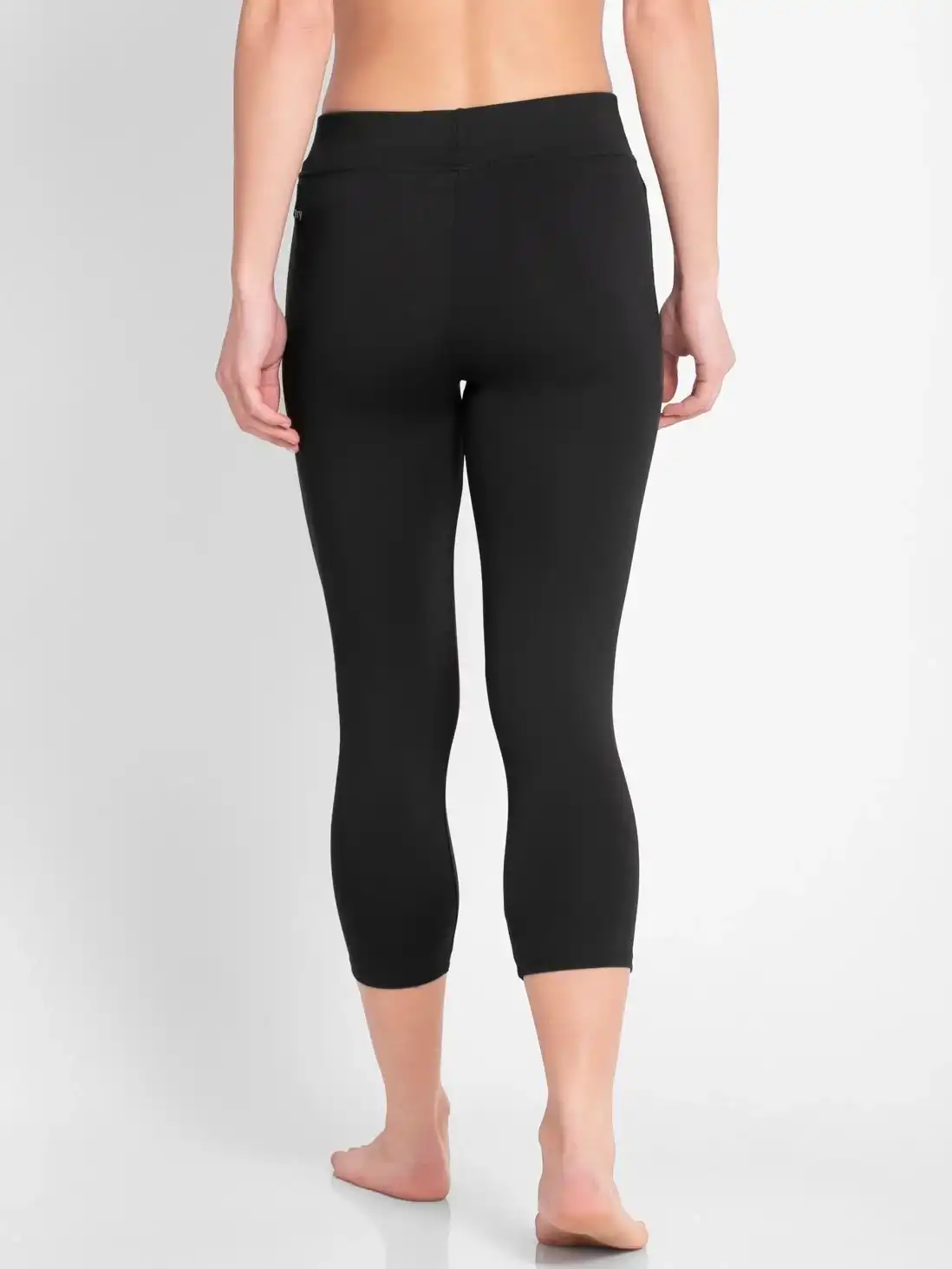 Jockey Capri Pants for Women with Pocket & Elasticated Waistband - Black, Style #AP24
