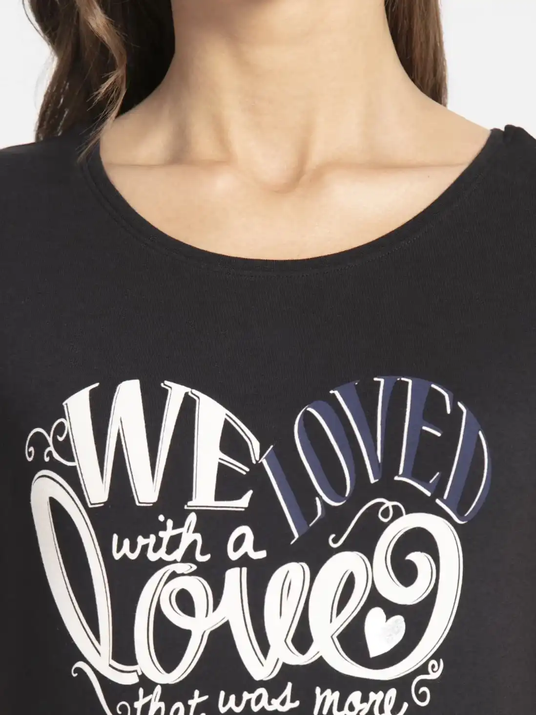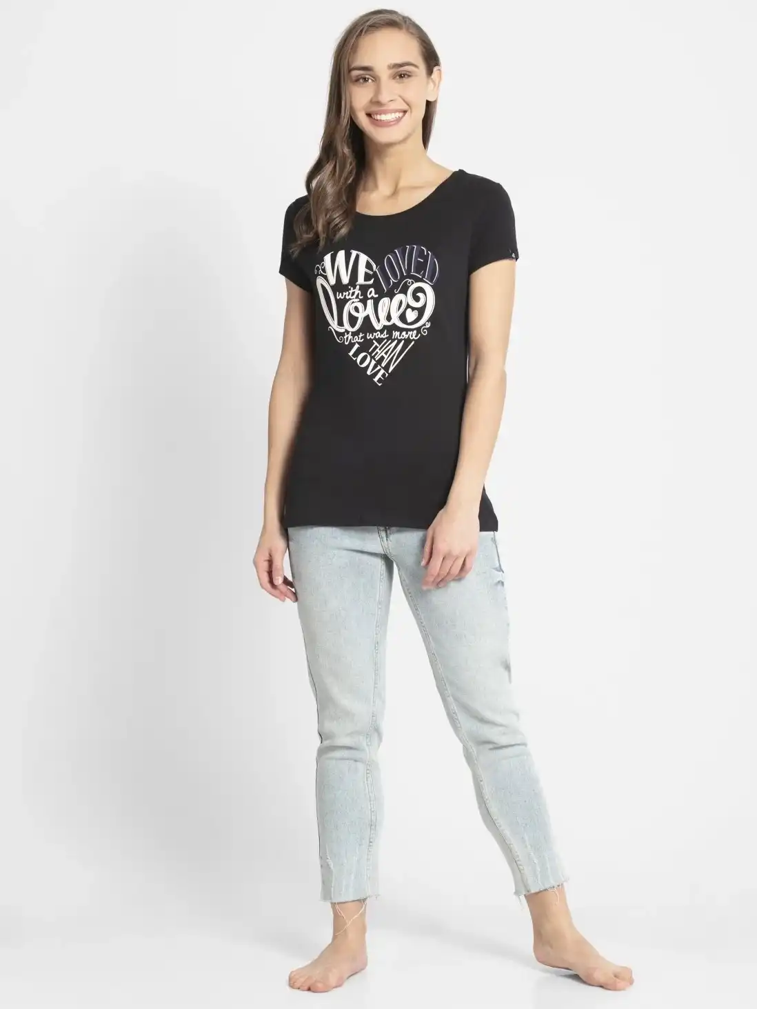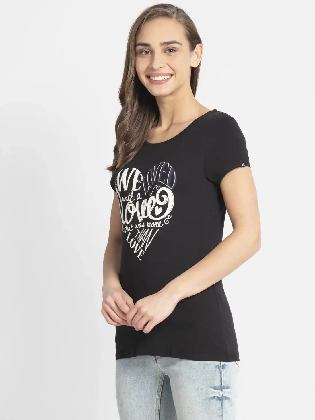 Jockey Graphic Printed Round Neck Half Sleeve T-Shirt for Women - Black, Style #1361 (Disclaimer: The product delivered may not of the same pattern)